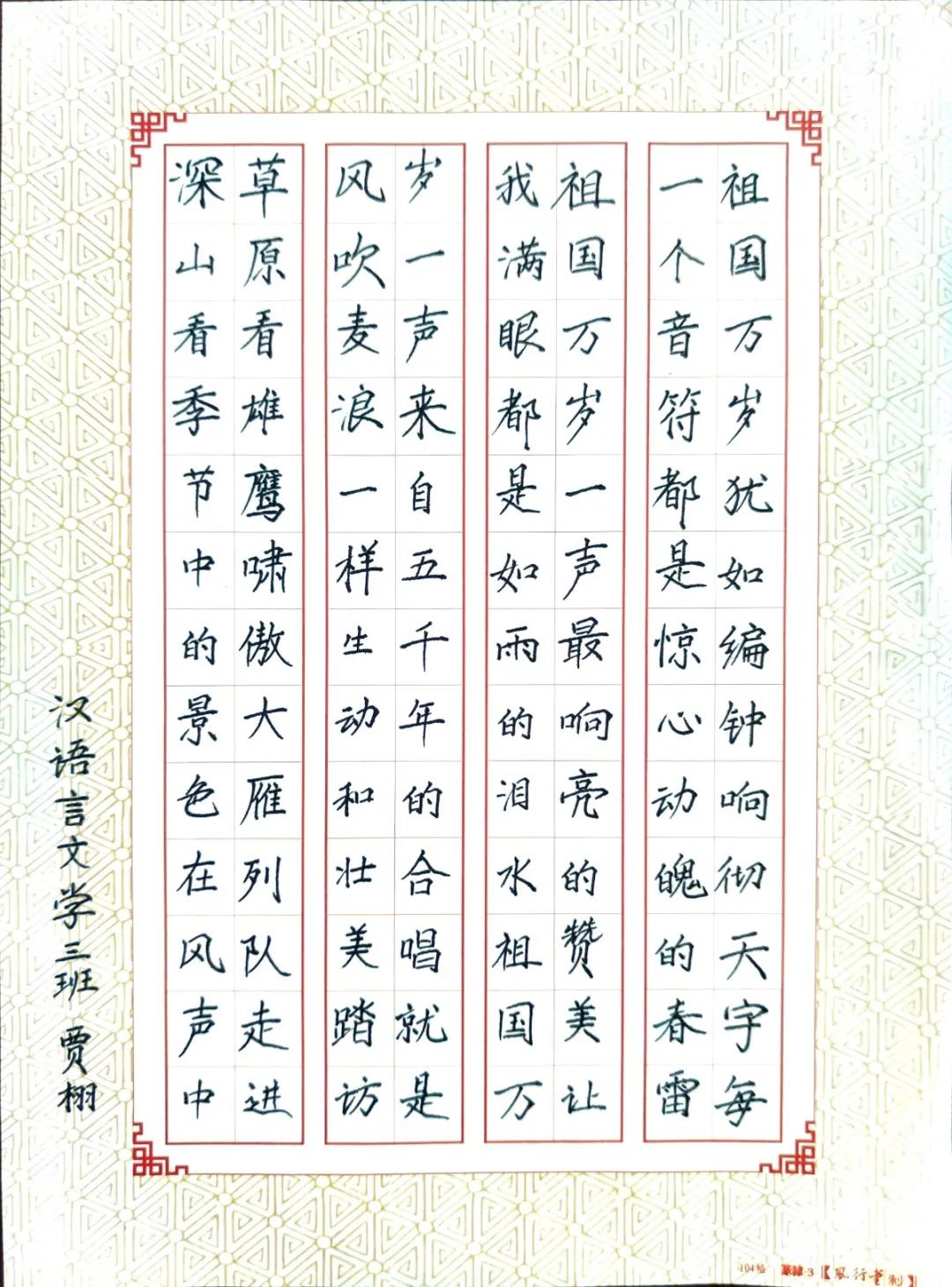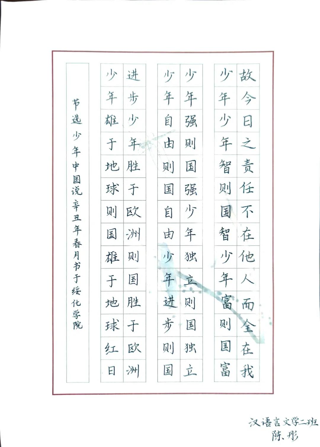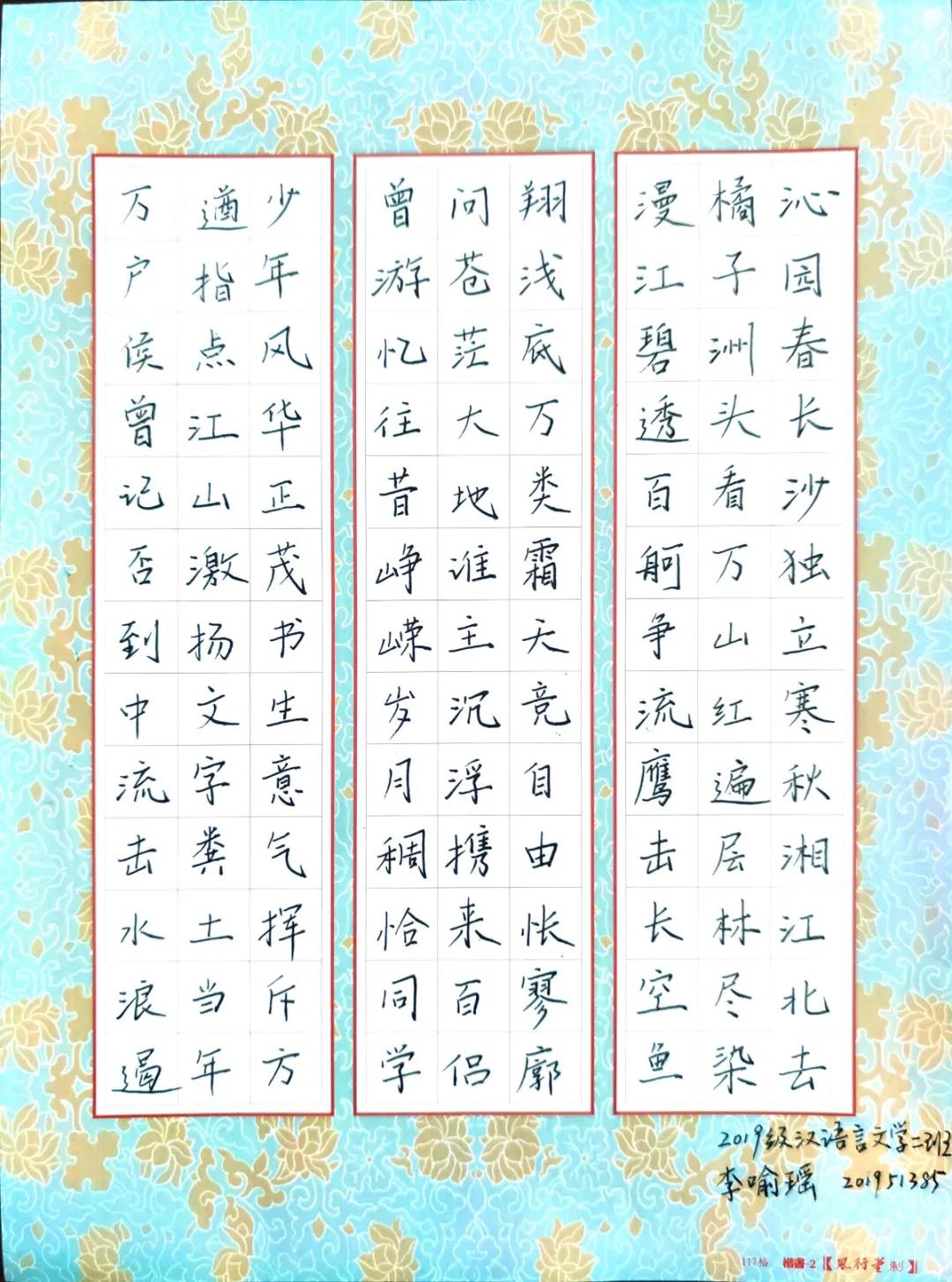 本次比赛规定以红色革命题材诗词和警示励志名言为书写内容,立足pg游戏官网专业学科特色,讴歌革命先烈英雄主义情怀,在革命诗句中感受红色政权来之不易、新中国来之不易、中国特色社会主义来之不易,不断厚植爱党、爱国、爱社会主义的情感,不断传承红色基因,肩负使命重担,献礼建党百年。