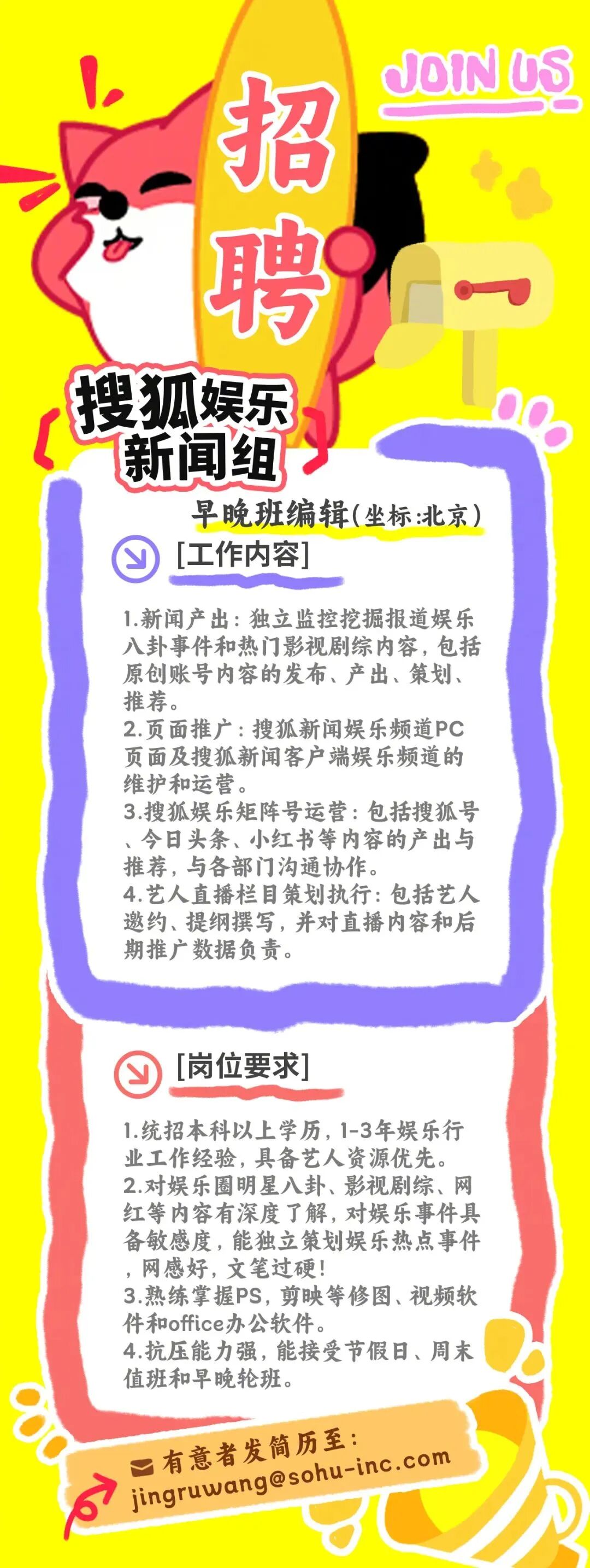 就业指导丨搜狐娱乐新闻组招聘