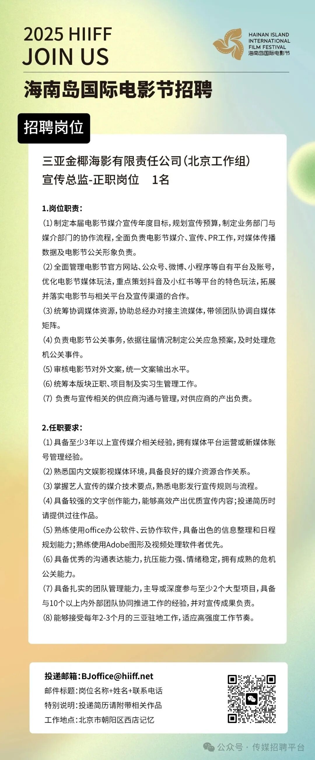 就业指导丨海南岛国际电影节招聘宣传总监