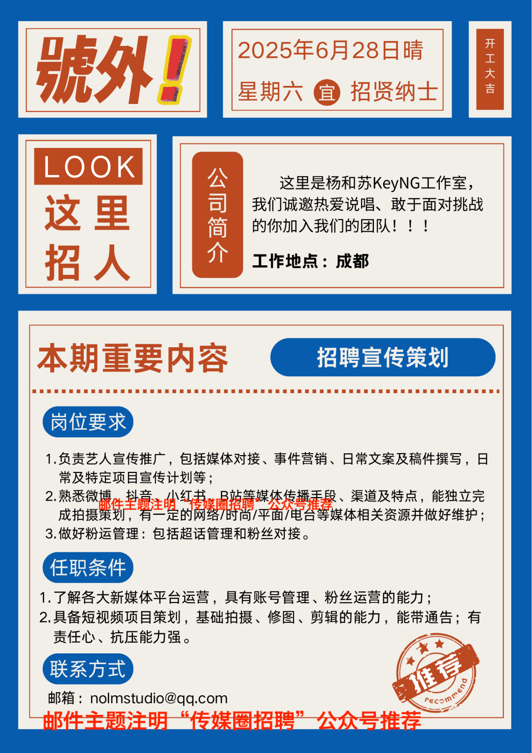 就业指导丨北京奇颂文化招募签约演员