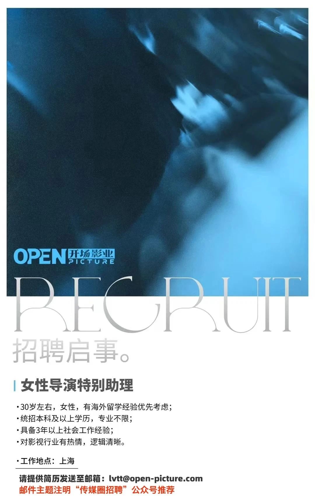 就业指导丨开场影业招聘导演助理!