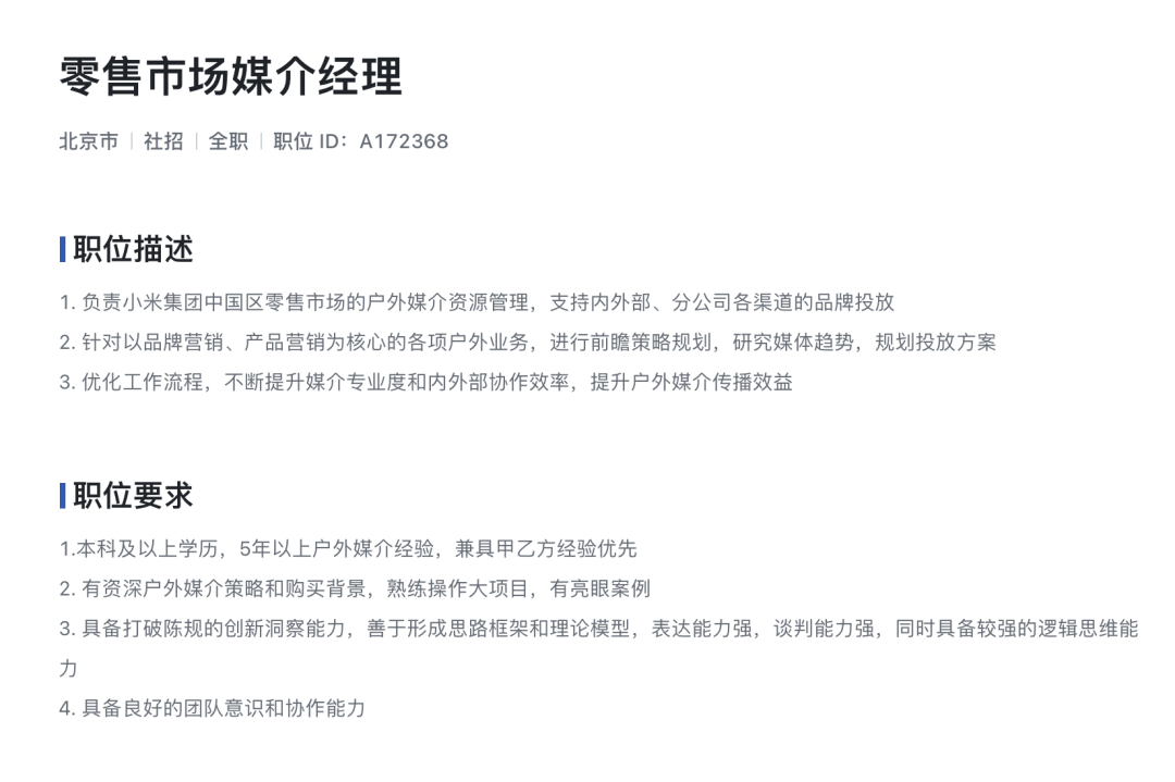 就业指导丨小米汽车招聘(传媒类岗位)