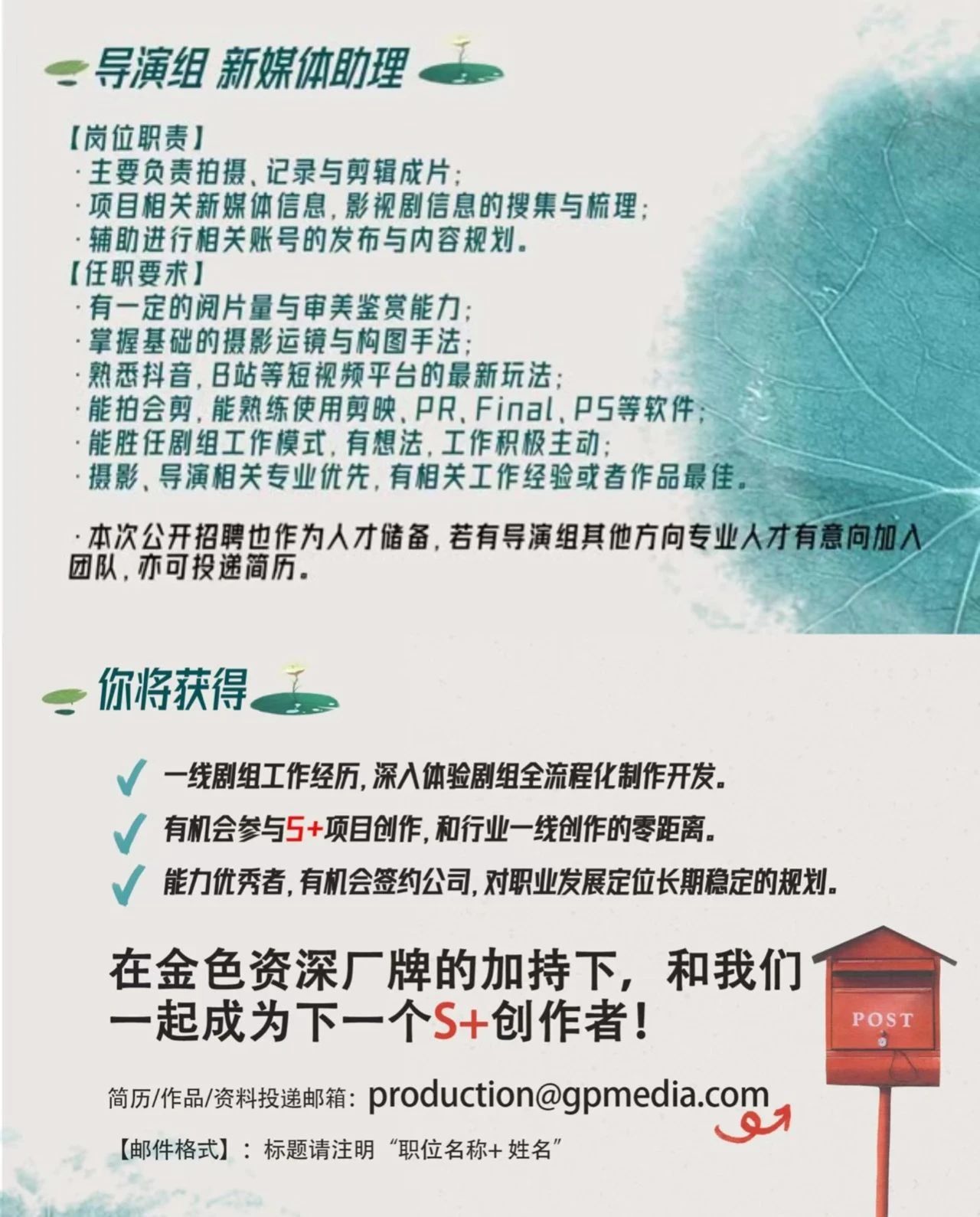 就业指导丨金色传媒招聘导演组新媒体助理