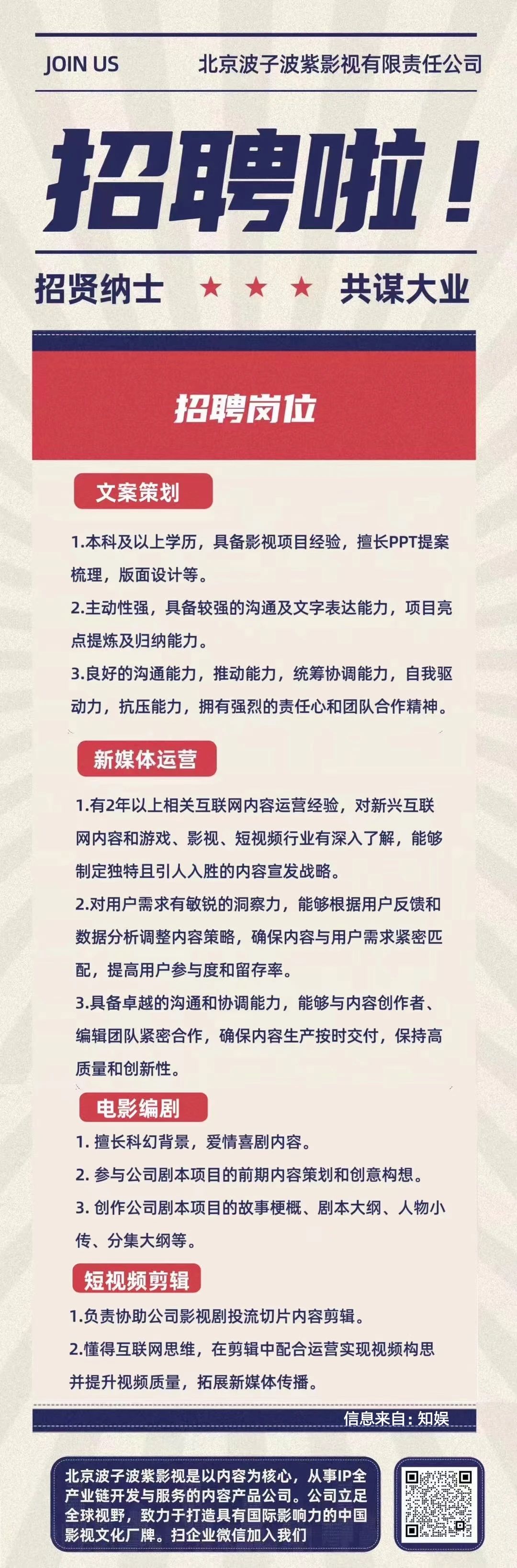 就业指导丨波子波紫影视招聘文案策划等岗位