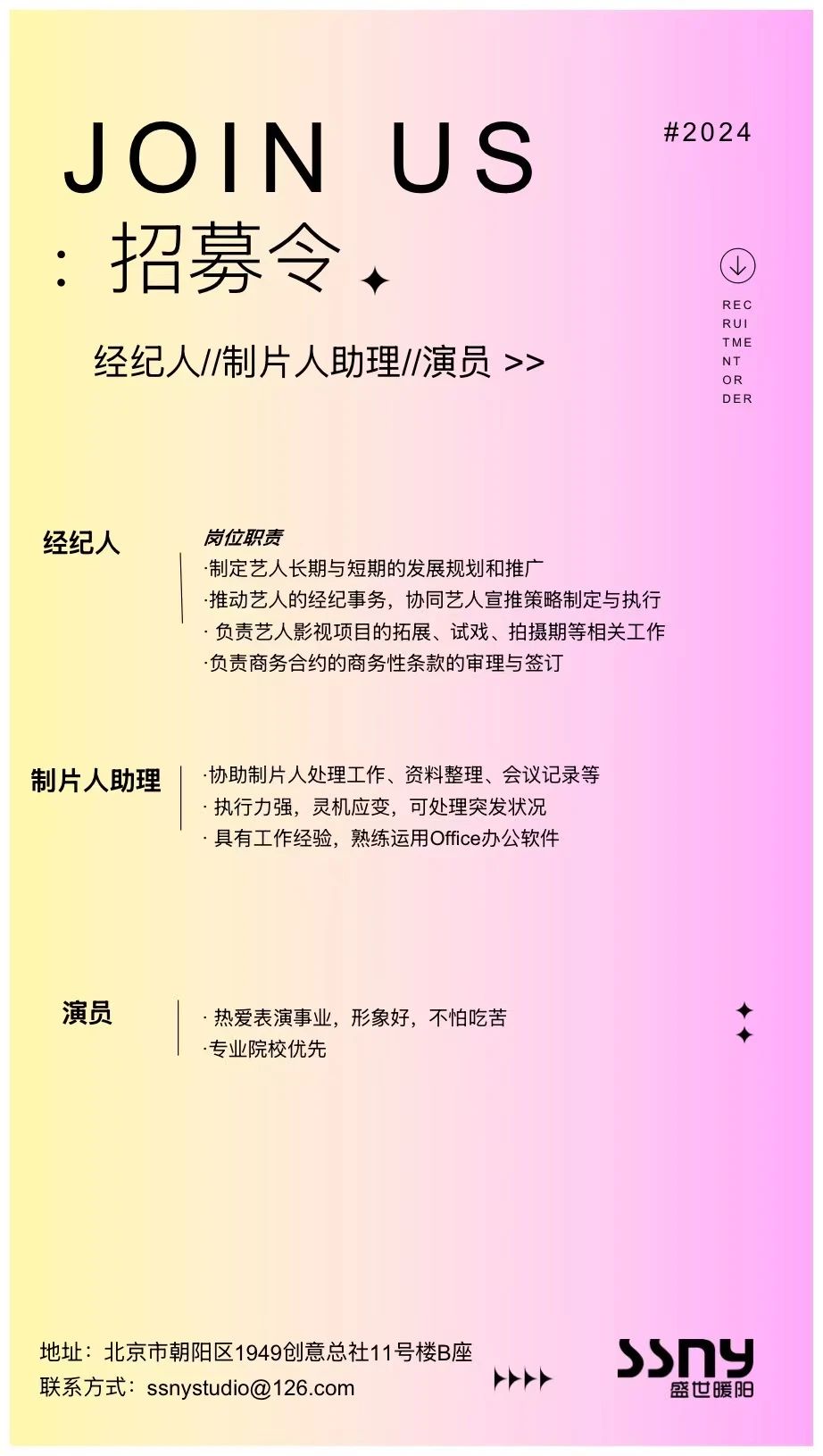 就业指导 | 盛世暖阳招聘经纪人、制片人助理、演员