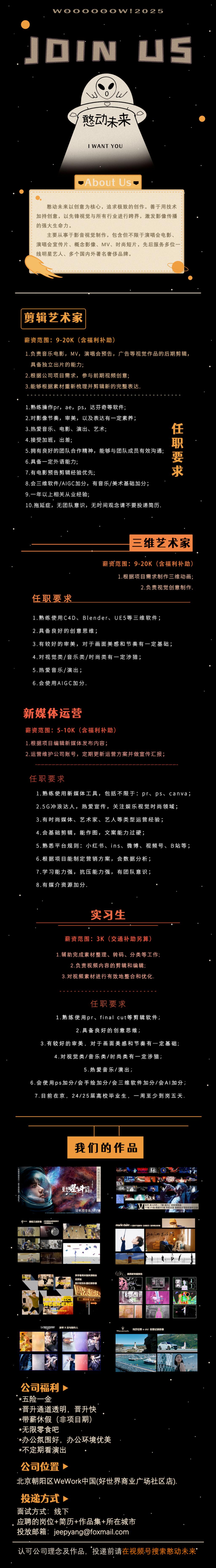 就业指导丨演唱会电影制作公司憨动未来招聘公告!