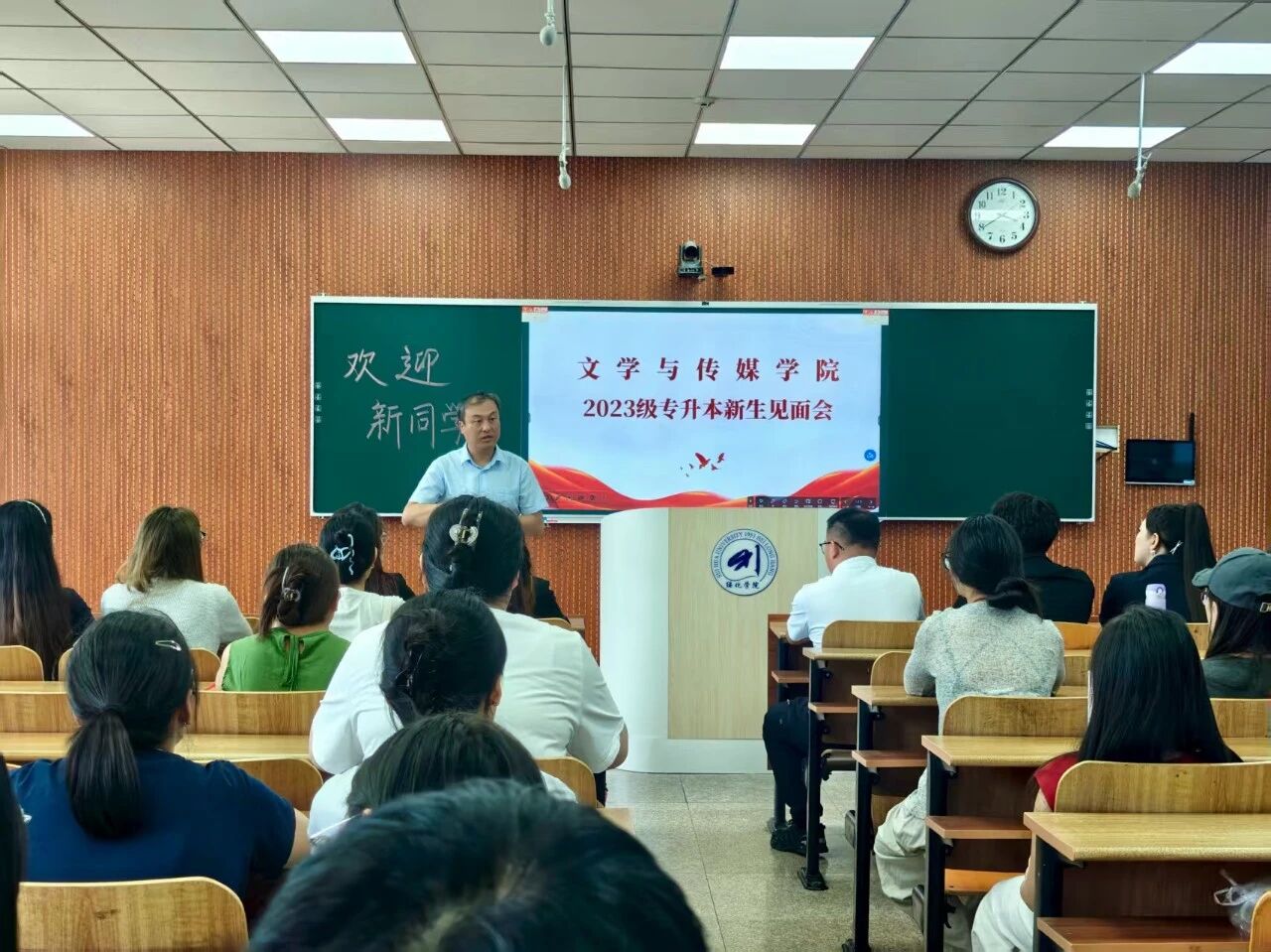8月27日下午,pg游戏电子模拟器在汇文楼313教室召开2023级专升本新生见面会。党总支书记王子鸣出席会议并讲话,2023级辅导员于小庆主持会议,四位代班及2023级专升本全体新生参加会议。