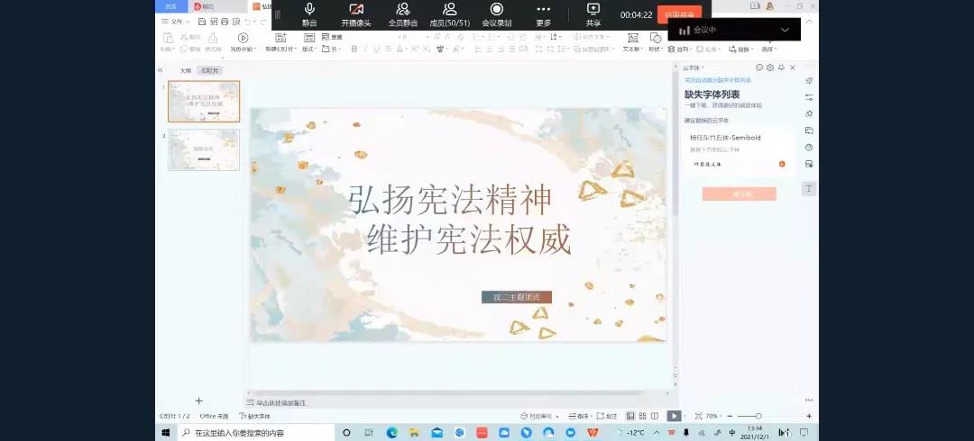 为贯彻落实习近平总书记关于宪法学习宣传教育的重要指示精神,落实依宪治国的重大方针政策,pg游戏官网把宪法教育作为学校师生思想政治教育建设的重要内容。12月1日下午pg游戏电子模拟器响应学校号召,各班利用钉钉直播线上平台开展了以“弘扬宪法精神,维护宪法权威”为主题的团活。