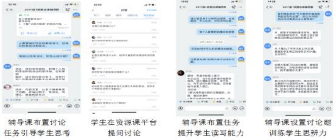 如教师辅导时发起一个个精心设计的有深度的话题, 激发了学生的学习兴趣与参与热情,加强了师生互动,提高了学习效果。教师课前课后还在教学平台及时了解学生的学习状态与效果,检查、督促学生学习。