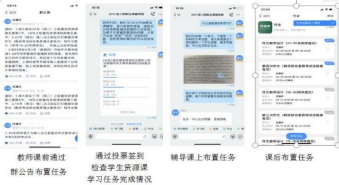 线上辅导之前,以群通告的方式布置学习任务,引导学生明确学习目标,激发学生学习兴趣。线上辅导时,采用投票签到的方式灵活检查学生资源课学习任务完成情况,并让学生通过自主、合作、探究学习完成课堂与课后任务,提升思维、写作、朗读、教学等综合能力。
