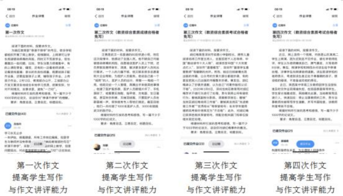 好的教学应是关注学生心灵成长的润物无声的教育,所以布置作文的目的不仅是要提升学生的写作能力,更要让学生通过写作训练获得心灵上的成长。四篇作文材料都源于当下的新闻热点,如“停课不停学”、快递小哥汪勇助力医生抗疫、胡红梅抄袭事件、在线教学中的师生冲突等。学生非常感兴趣,有感可发。学生作文提交到钉钉群,老师要点评,学生也要互评。上辅导课时,教师还会组织学生讨论典型作文的优点和不足,引导学生分析与解决问题,学会辩证地看问题。通过深度学习,师生之间、生生之间有了智慧与灵魂上的碰撞,既提高了学生的思维、写作与作文教学能力,也为学生参加教师资格证考试提供了写作辅导,可谓一举多得。