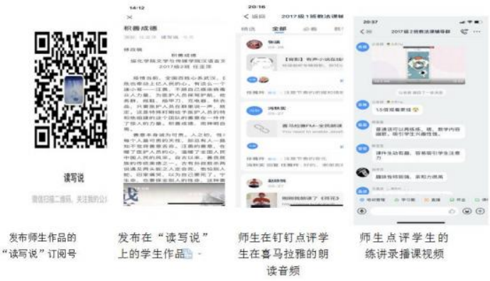 如教师为学生推荐了人民教育出版社网、试讲示范视频网、优课展示网、中小学教师资格考试网等优秀网站,还有镇西茶馆、丽钧作文、语文榕等优秀的微信公众号,丰富学生的学习资源,扩大学生视野。教师还自建“读写说”订阅号发布师生作品,激发学生读写兴趣,为学生提供知识迁移的发表平台。当学生的作品发布到微信公众号、博客、微博等众多融媒体平台后,有了除老师之外的众多读者,学生写作的自主性与积极性就被激发起来;当学生的写作与现实生活紧密联系在一起,学生写作的成就感与使命感便油然而生。教师还让每个学生在喜马拉雅建账号练习朗读,把朗读音频发到钉钉学习圈子,师生点评,互相交流学习,提高学生的朗读能力,为其将来当语文教师打下坚实的基础。这样,学生“读写说”的能力才有提高的可能,才能真正在学习中受益。