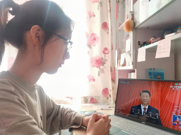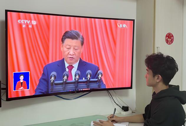pg游戏电子模拟器党政领导班子成员、辅导员及学生党员代表在汇文楼326会议室集中观看开幕会;36名学生代表在313教室收看开幕会;其余在校和居家师生通过广播、电视、网络等方式收听收看党的二十大开幕会直播盛况。