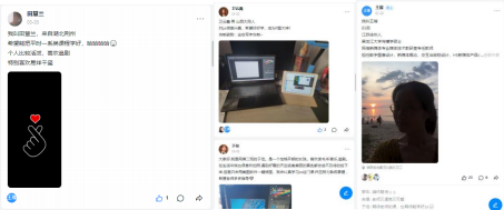 开学后,教学圈渐渐热闹起来,上课签到发个动态到圈子,还可以配上自己当下“学习姿势”的图片,一大早上课尽管有同学还没下床,但是电脑、笔记本准备的一应俱全,大家看着彼此此刻的状态,感觉很亲切,教学圈再一次拉近了身在异地同上网课的师生们的距离。