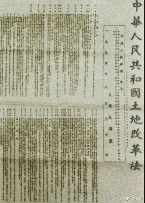 1950年6月30日,中央人民政府公布施行《中华人民共和国土地改革法》。