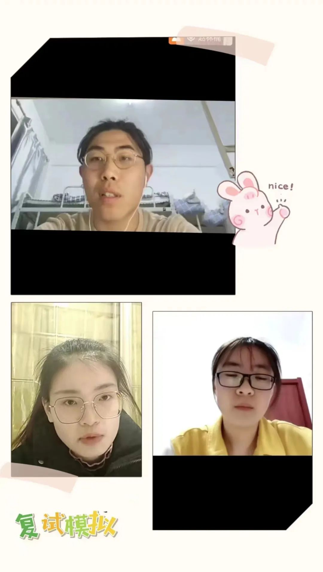 为帮助2023届毕业生做好考研复试准备,3月16日晚,pg游戏电子模拟器采取线上方式组织开展考研复试模拟面试活动,副院长汪淑双,专业教师吴春生、王佳伟出席活动并担任模拟面试官,本次活动由党总支副书记、2023届毕业生辅导员赵林楠主持。