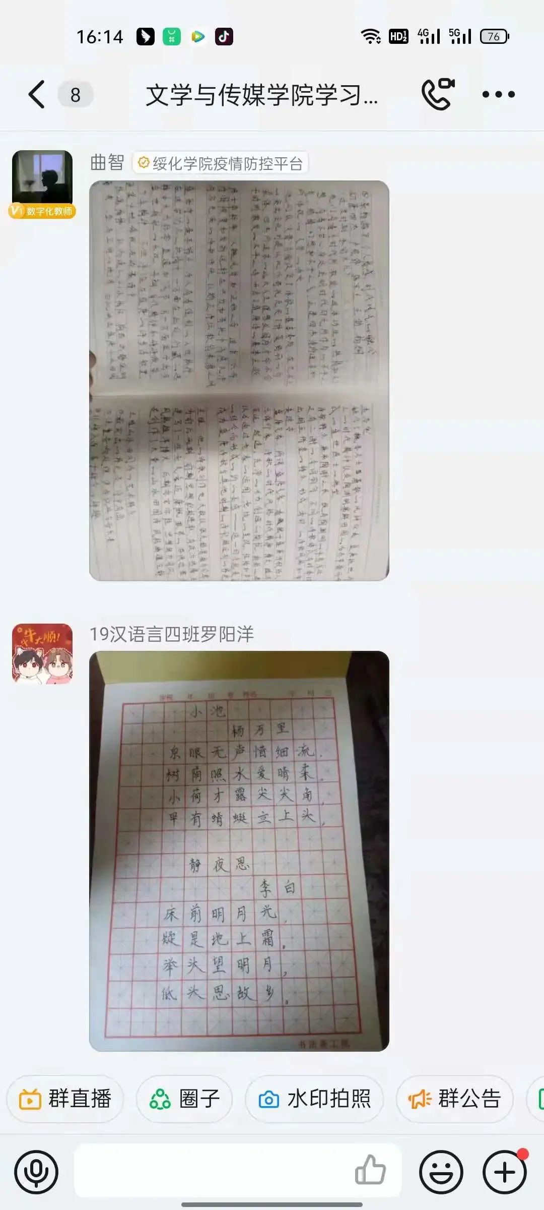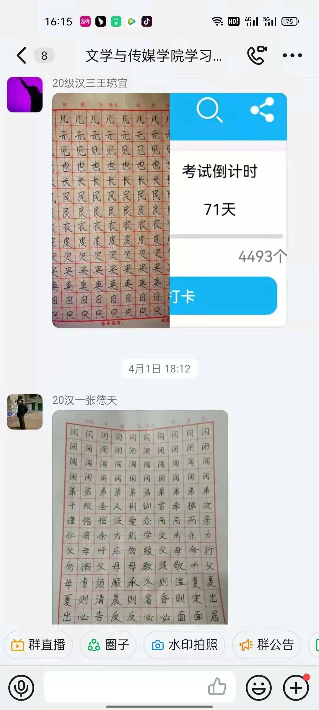 书法打卡可谓是师范生中的“热门”,pg游戏官网汉语言文学专业的学生牢牢把握这次机会,练习三笔字,看着他们赏心悦目的文字,仿佛看到了pg游戏官网师范生身上独有的责任感和使命感。坚持书法打卡不仅能提高自己的专业能力,还能反映出学生们对字体的重视和对自己的严格要求,在他们的书法打卡上,每一篇文字都做到了尽善尽美,让人感到心旷神怡。