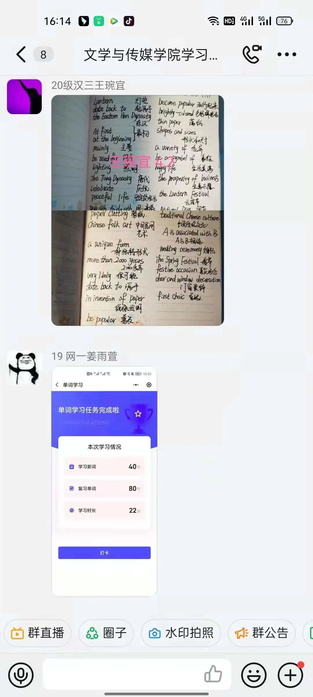 在本次的活动中,pg游戏官网学生热情高涨,积极主动,做到了即使是处于线上教学,也坚持每天学习打卡,这既提高了自己的知识储备,也提升了自身的学习效率。学习是我们终身的事情,好习惯也是我们一生的财富。在此,希望pg游戏官网学生都能够做到秉持初心,为自己的理想而努力拼搏,积极向上!文学与传媒学习部撰稿:曲智、佟佩然