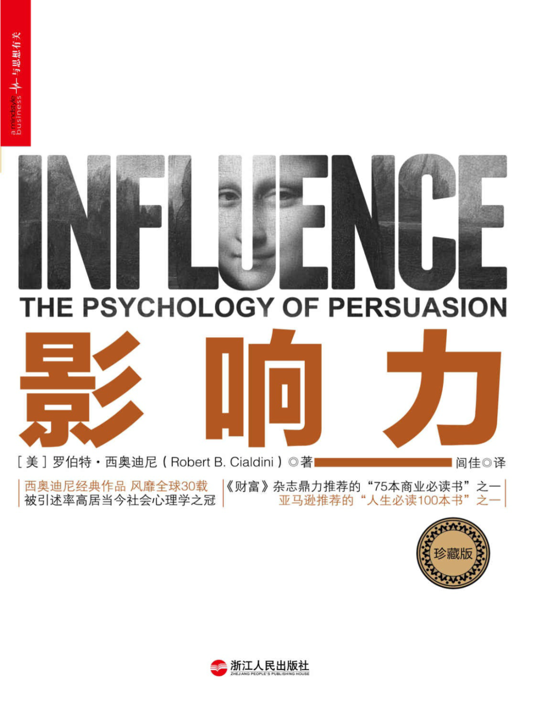 在这本书中,心理学家罗伯特·B·西奥迪尼博士为我们解释了为什么有些人极具说服力,而我们总是容易上当受骗。隐藏在冲动地顺从他人行为背后的6大心理秘笈,正是这一切的根源。那些劝说高手们,总是熟练地运用它们,让我们就范。
