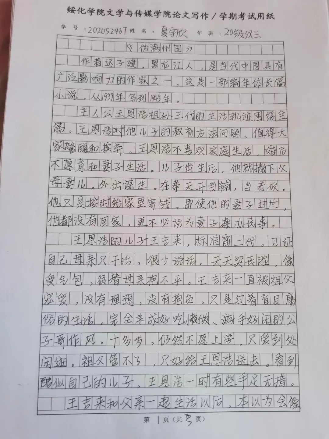2020级汉语言三班夏雨欣