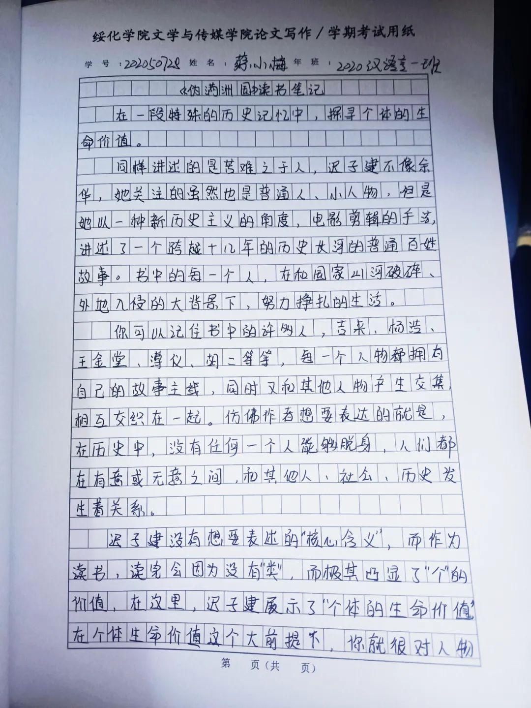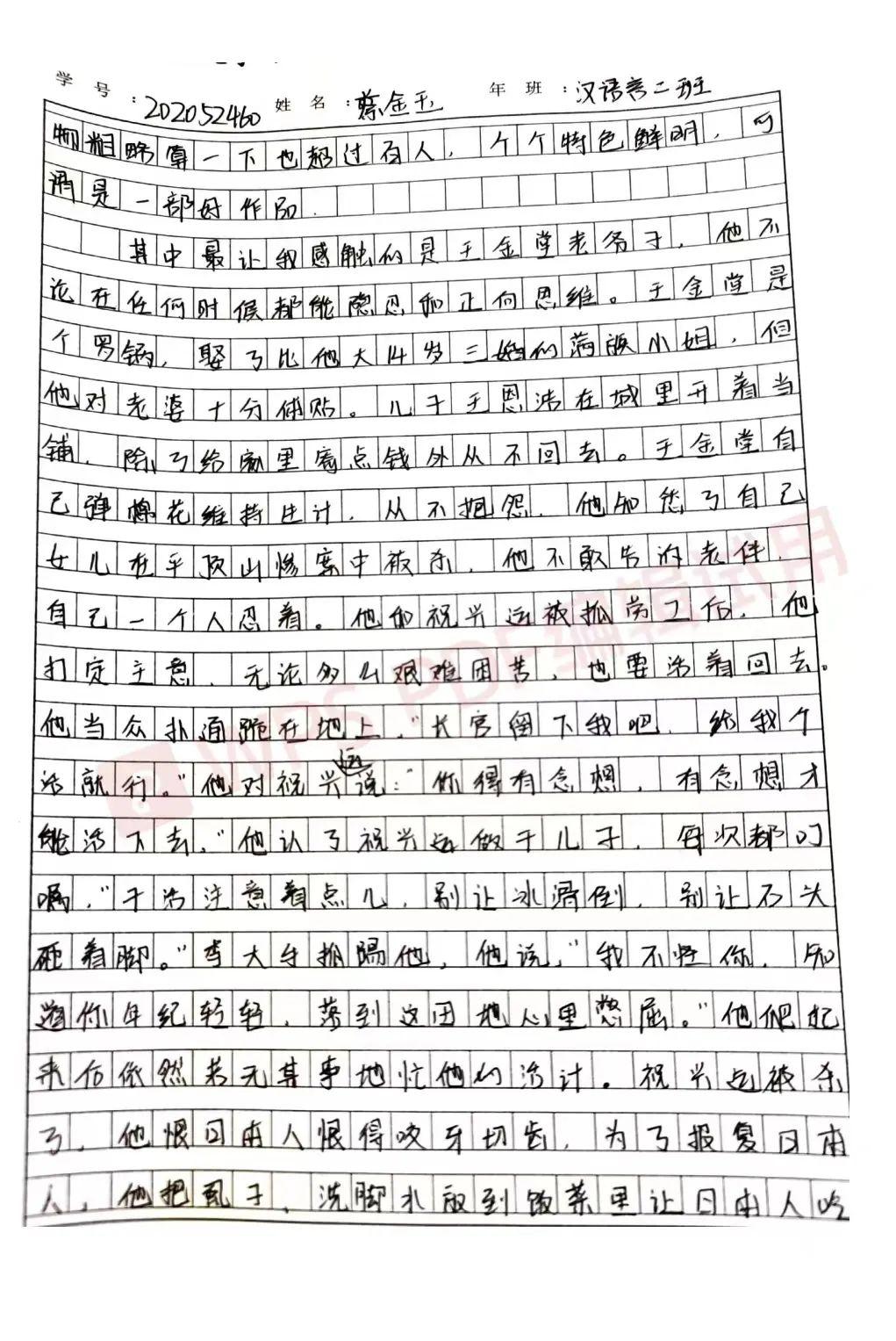2020级汉语言二班蔡金玉