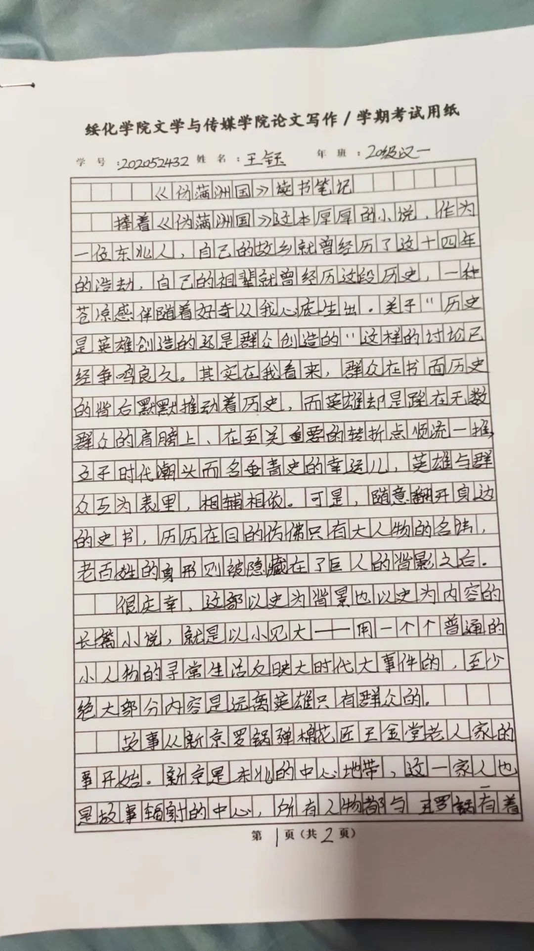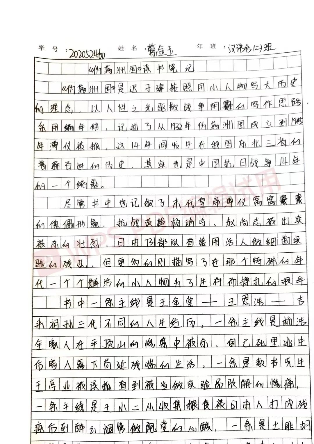 2020级汉语言一班王钰