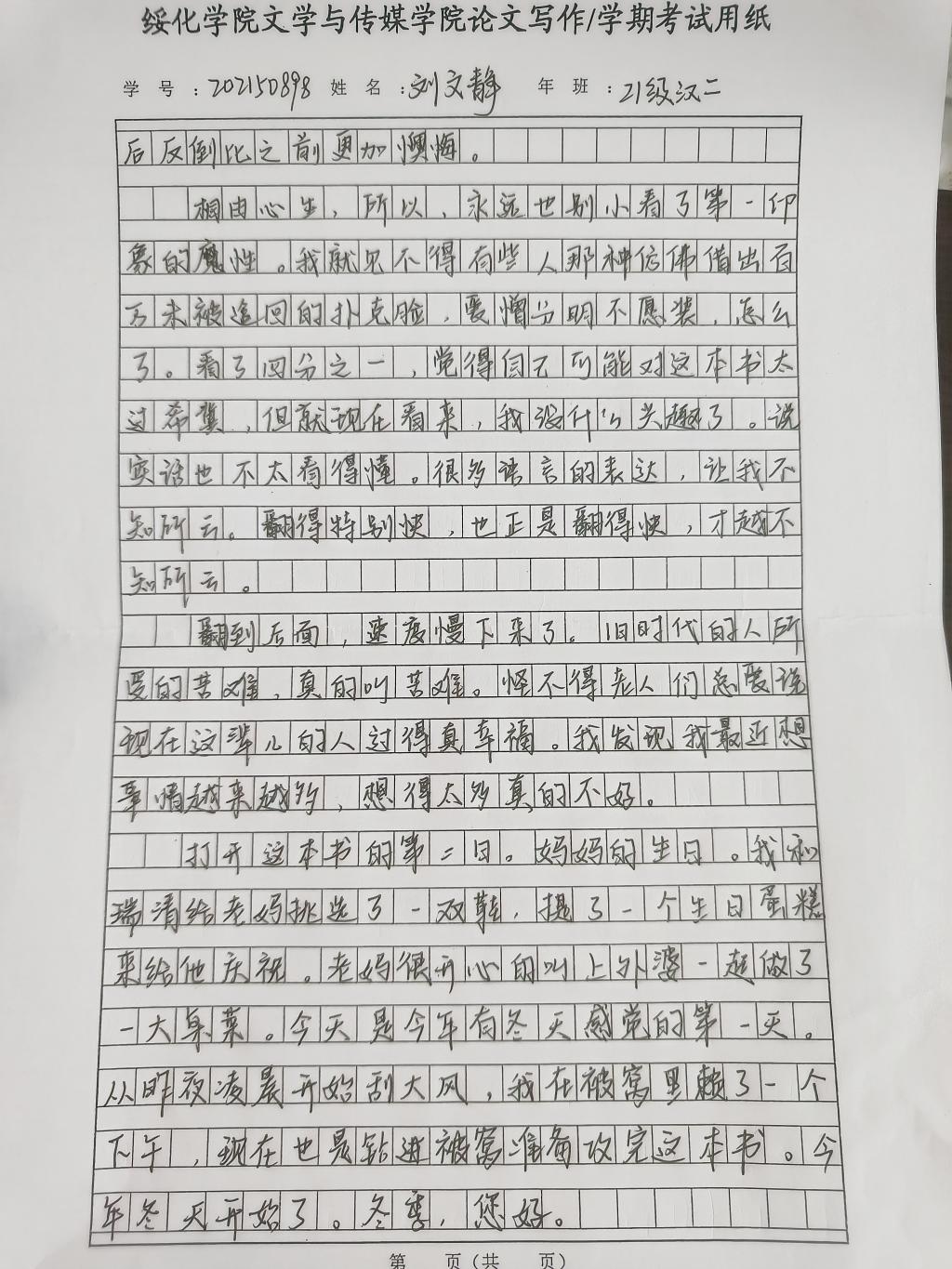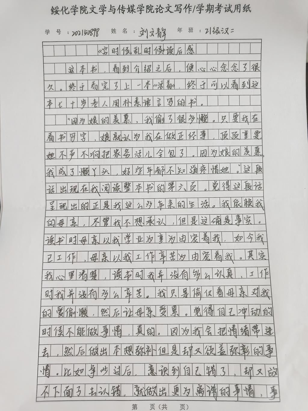 2021级汉语言文学二班刘文静