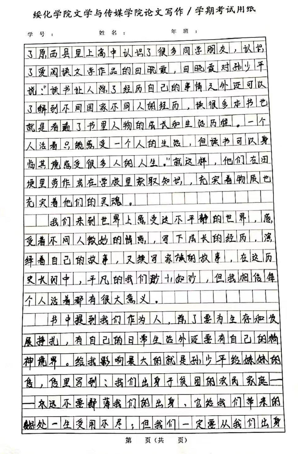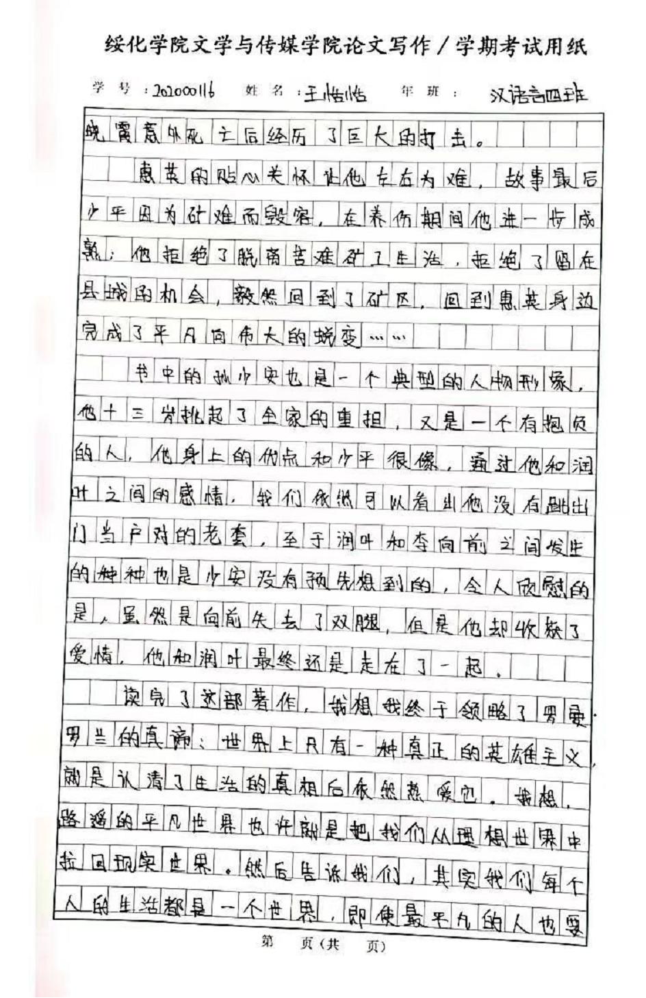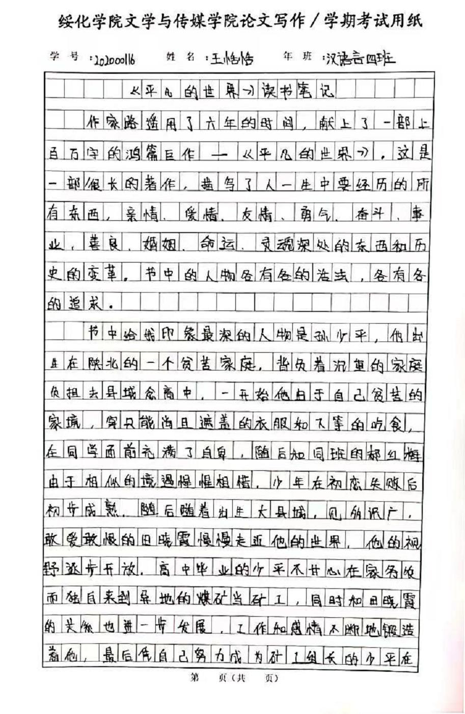 2020级汉语言文学四班王恬恬