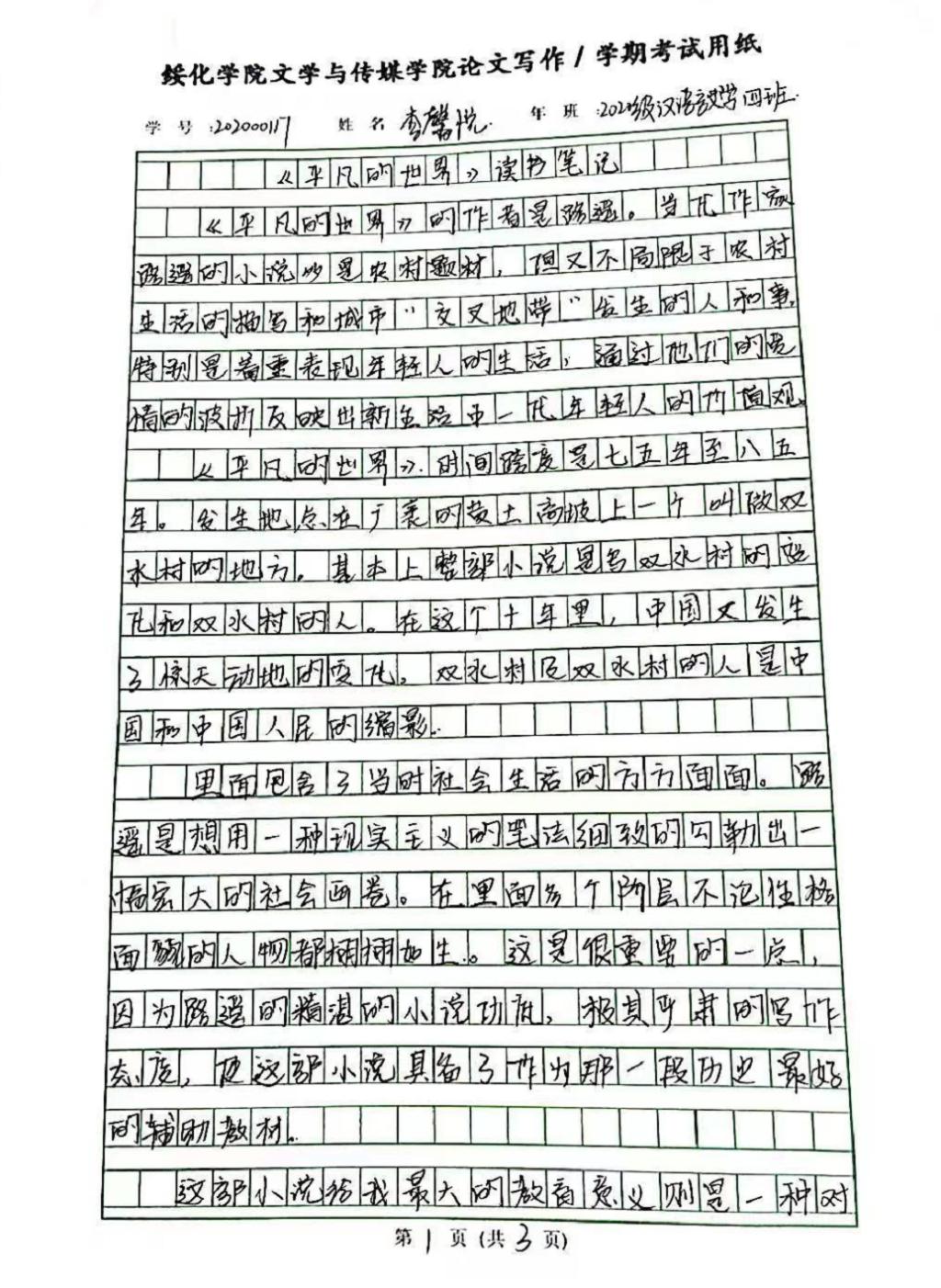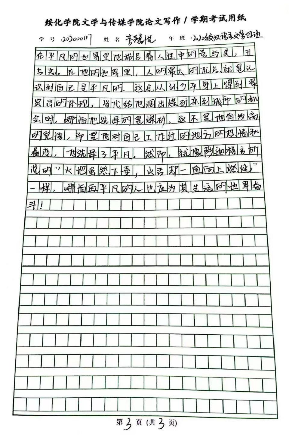 2020级汉语言文学四班李馨悦