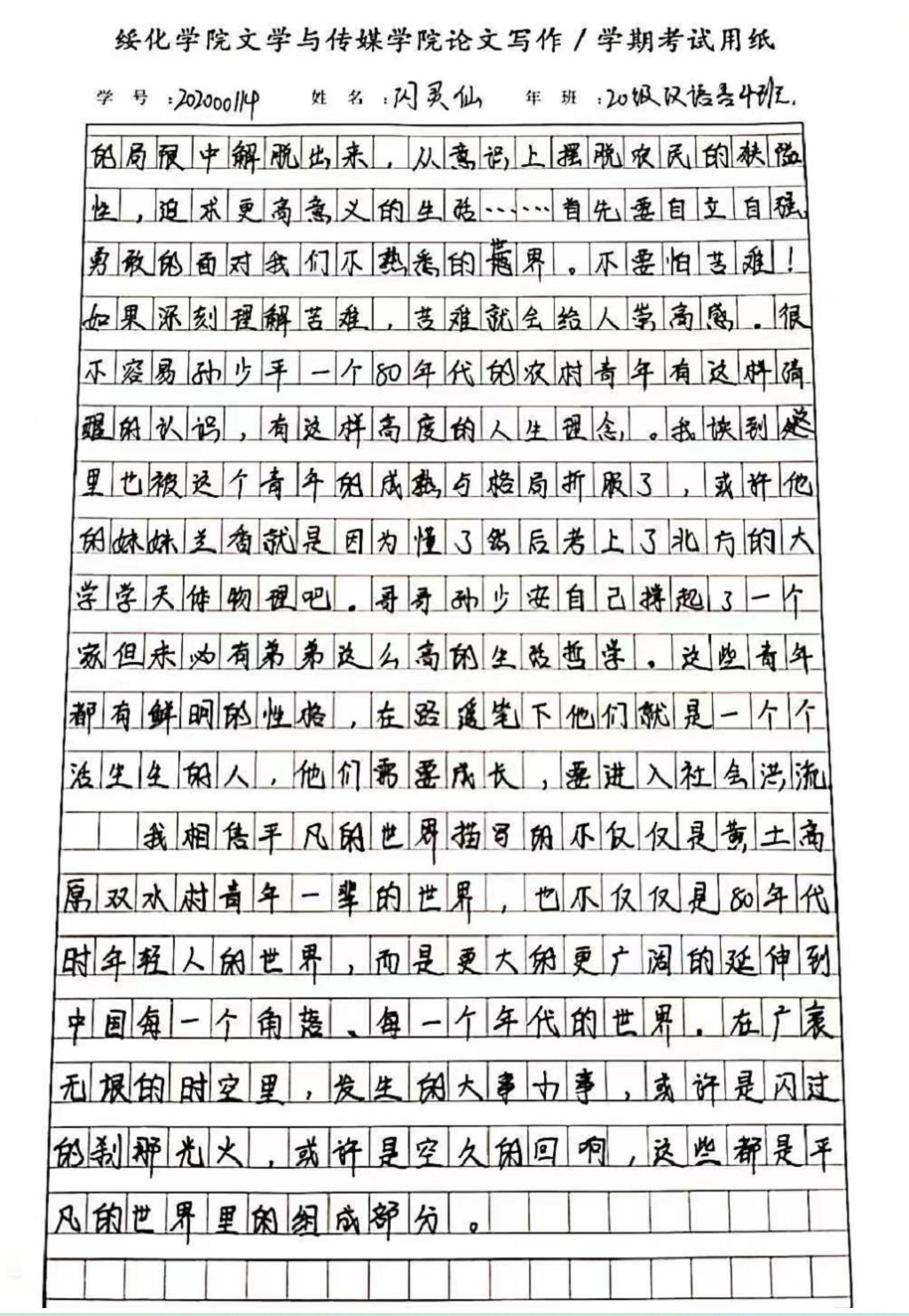 2020级汉语言文学四班闪灵仙