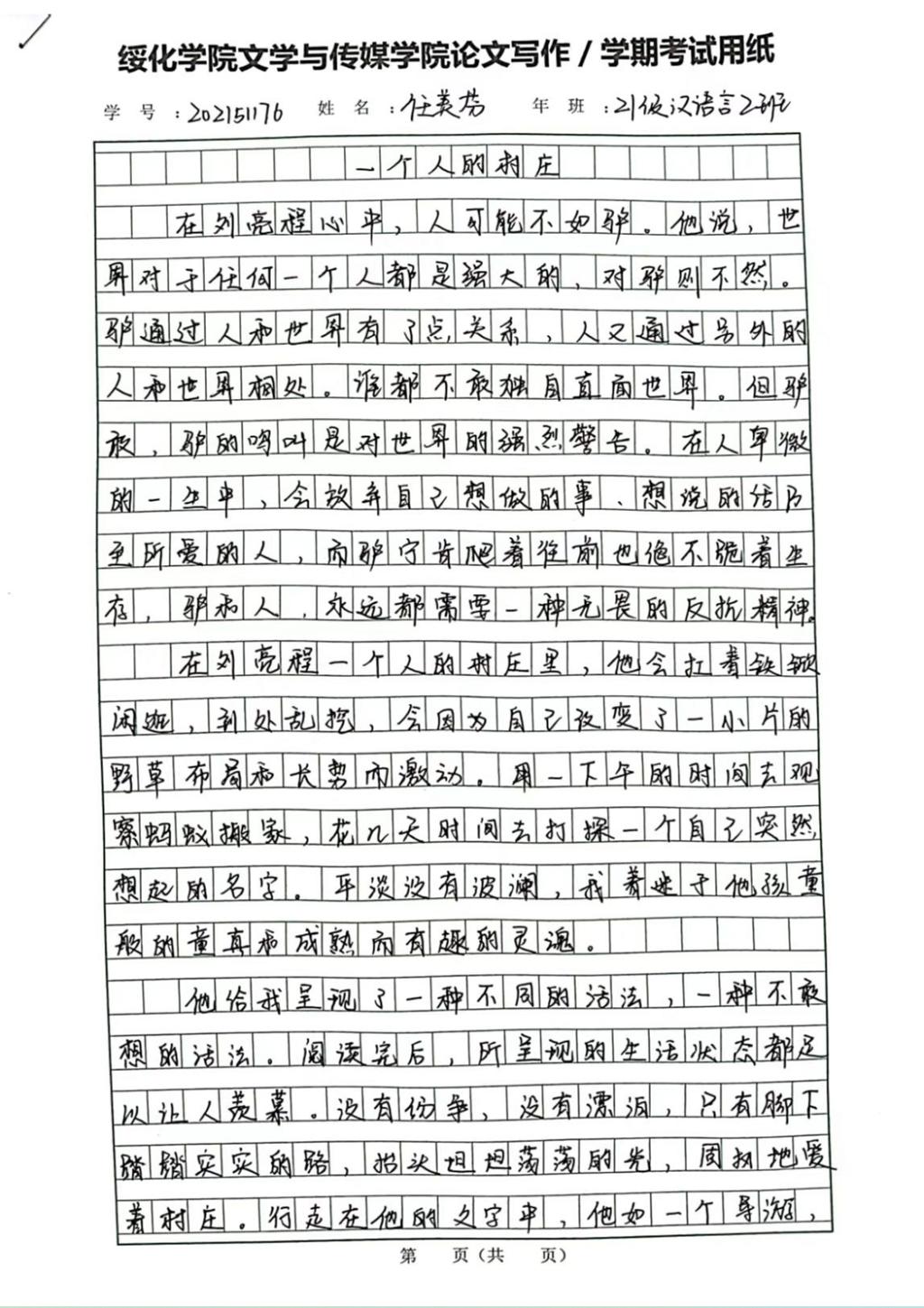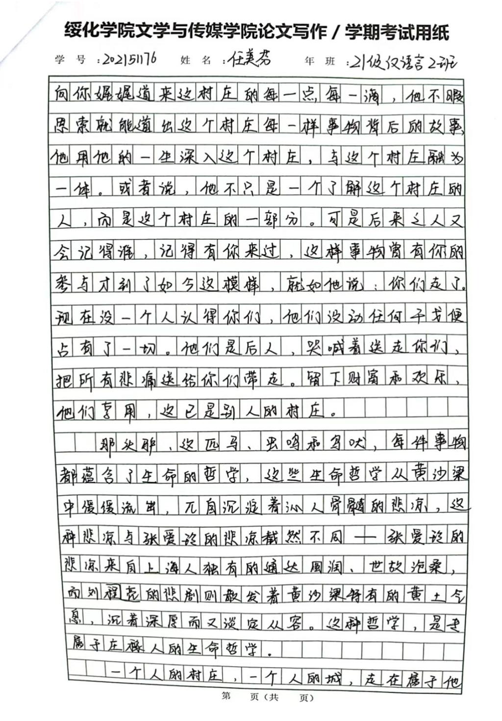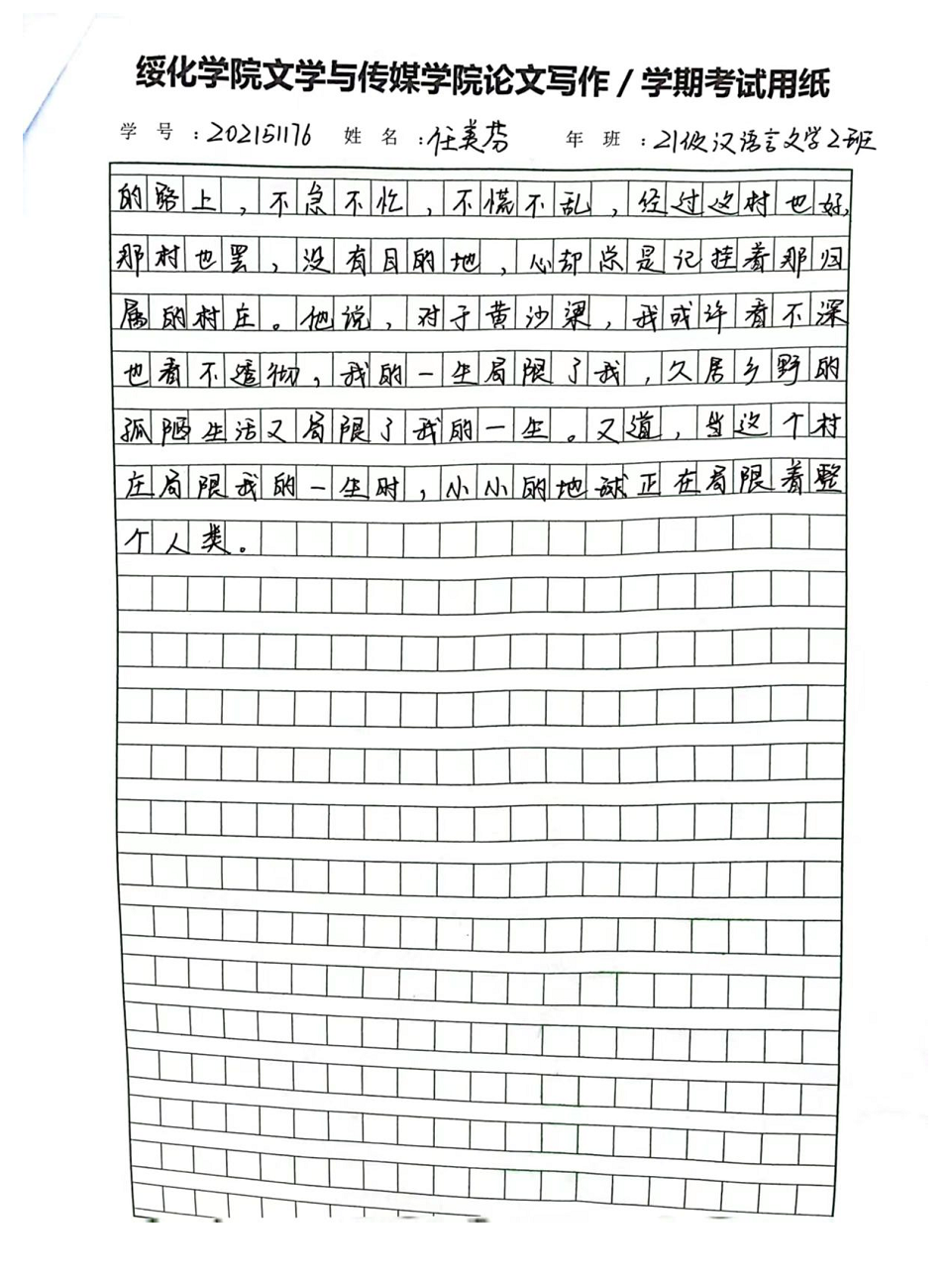 2021级汉语言文学二班任美芬