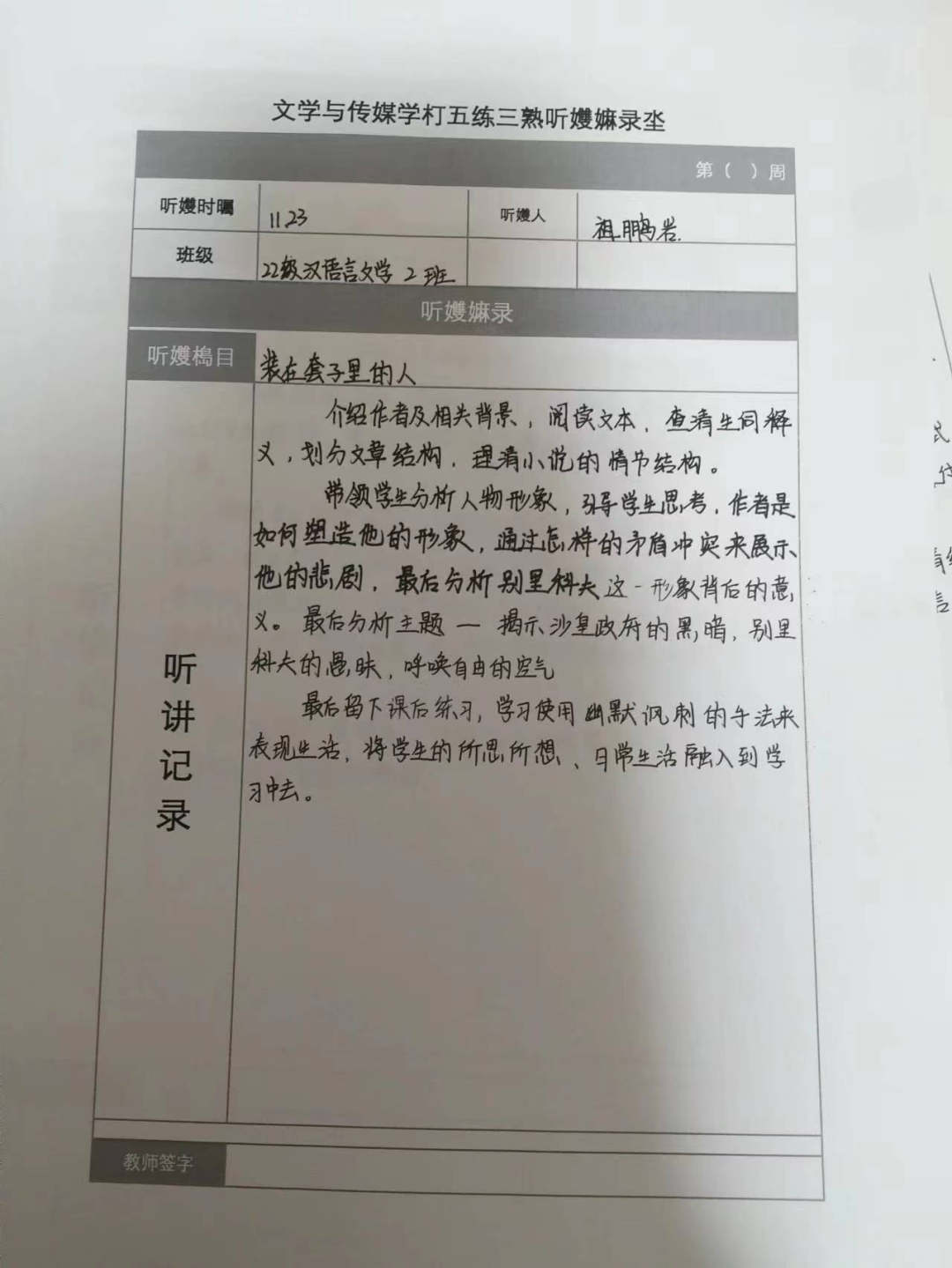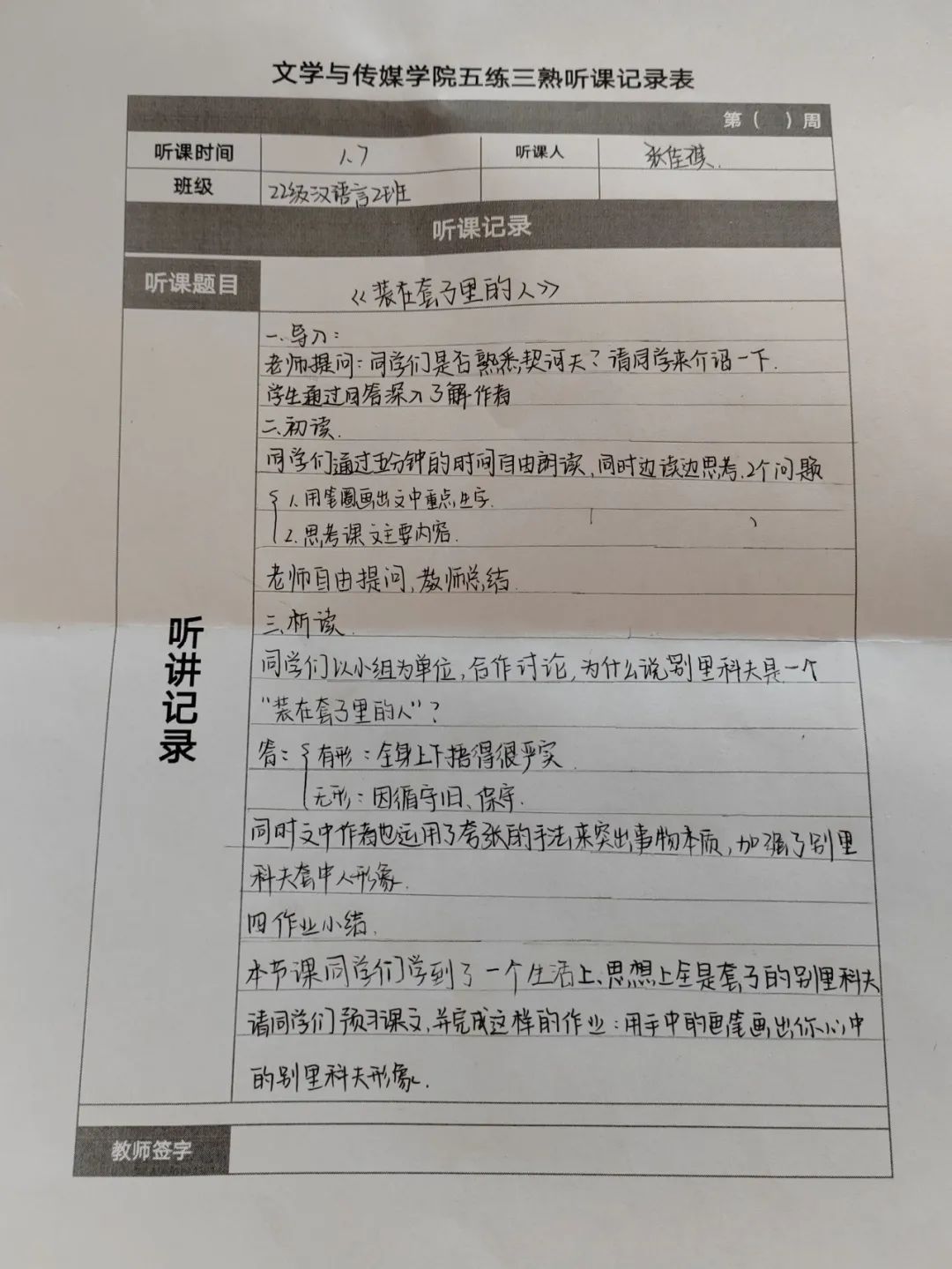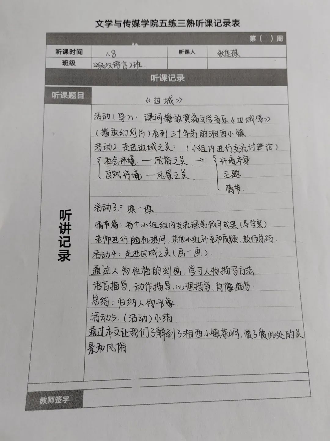 听课记录是听课的第一手资料,是课后进行教学反思交流的材料和依据,更是促进教师专业成长和提高教学水平的极其宝贵财富,为使汉语言专业学生更好的学习专业技能,pg游戏电子模拟器特开展听课笔记优秀作品展示活动,让我们一起来看看同学们的听课记录表吧!