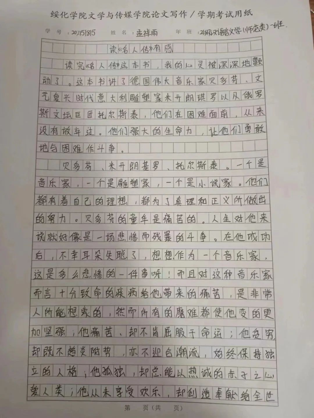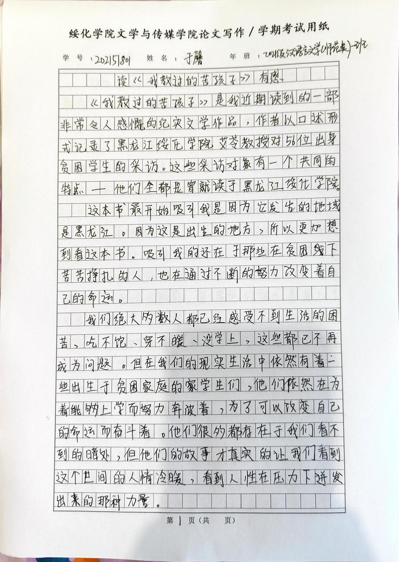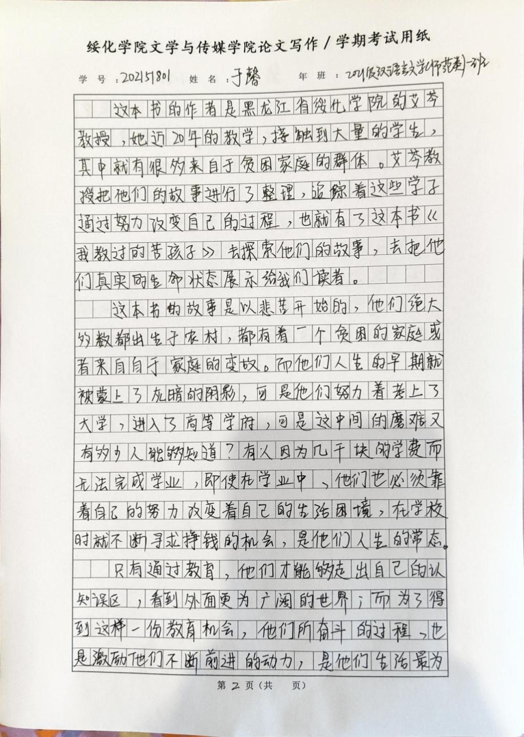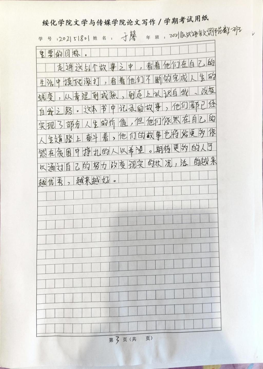 2021级汉语言一班于馨