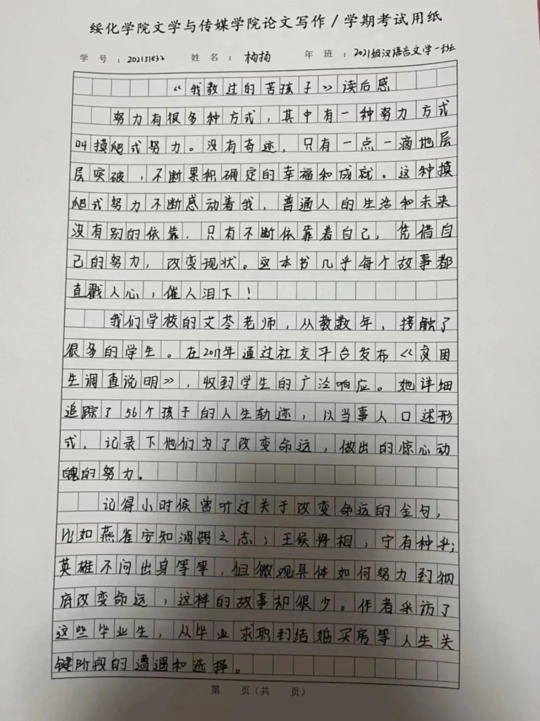 2021级汉语言一班杨扬