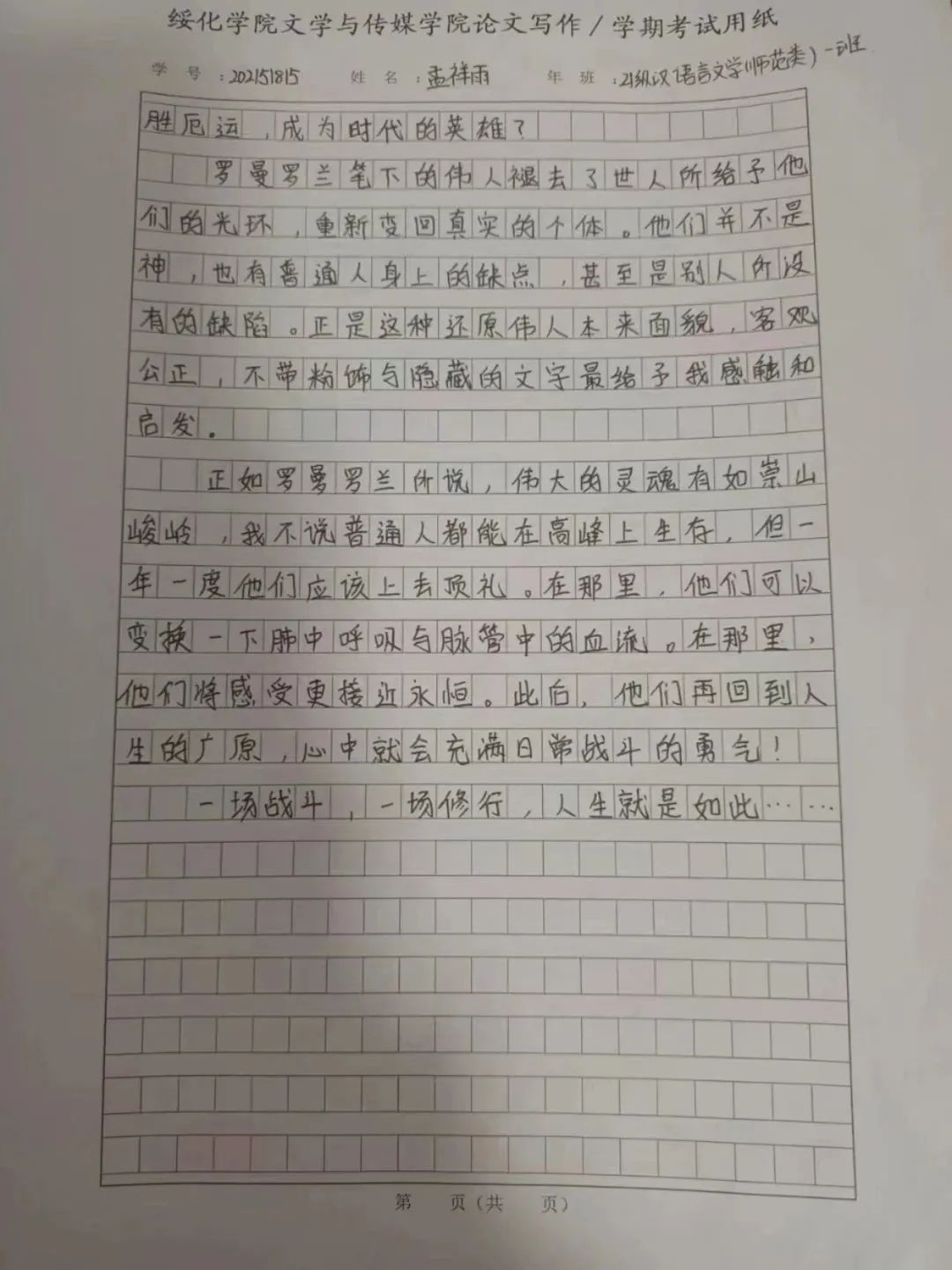 2021级汉语言一班孟祥雨