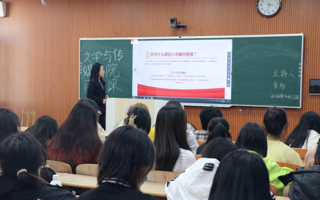 为深入学习贯彻党的二十大精神,进一步加强团员和入团积极分子对党组织、团组织的深刻认识,提高入团积极分子的政治素养,明确共青团员的责任与使命,增强共青团员的爱国热情和社会责任感,发挥先进典型在青年学生中的示范作用。4月17日,pg游戏官网于汇文楼218教室进行了入团积极分子第二次主题团课“青年,你为什么入团”。