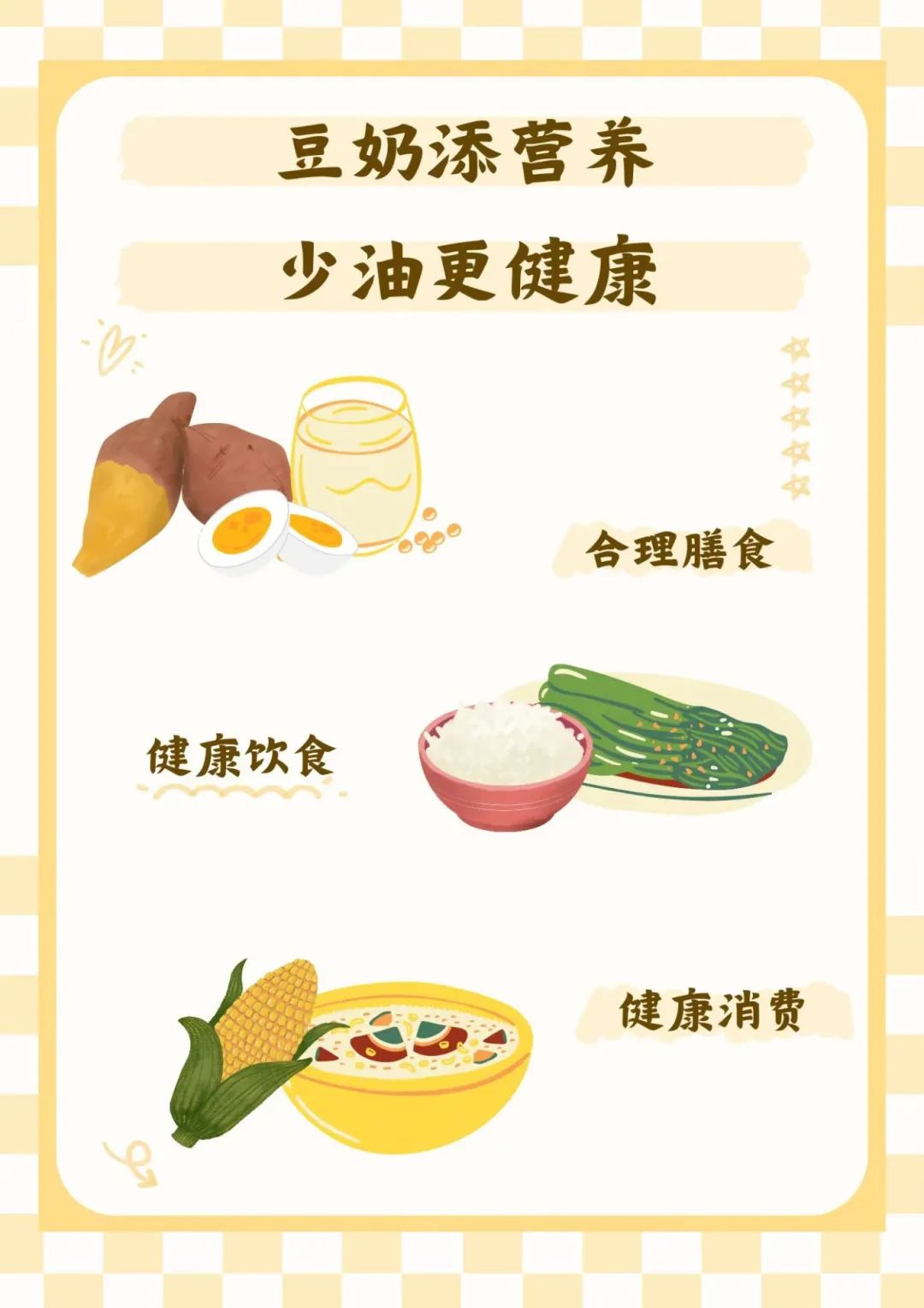 海报设计环节中,同学们尽情挥洒创意,围绕“奶豆添营养,少油更健康”的主题,创作出众多风格各异、色彩鲜明、意蕴丰富的海报作品。这些作品不仅展示了同学们对营养健康知识的深刻理解,也表达了他们对健康生活的支持。