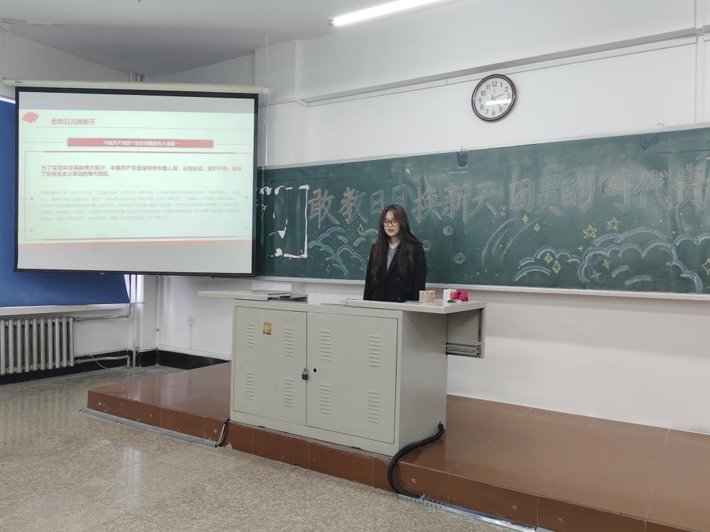 团课伊始,主讲人马雨彤从新时代中国青年的使命、团员的责任担当、如何做新时代的好团员等方面进行了讲解。她指出,新时代团员要时刻保持清醒的头脑,紧密地团结在党的周围,把个人的梦想与国家的发展紧密相连,把个人的奋斗融入民族复兴的伟大事业中。在服务人民、挺膺担当、攻坚克难中,实现成长的蜕变,彰显青春的价值。作为新时代青年,应当具备的不仅仅是知识和技能,更要有坚定的政治立场和强烈的历史使命感。
