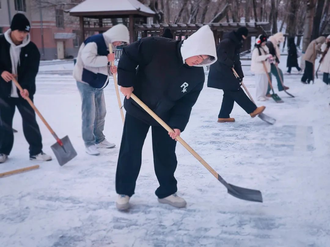 在扫雪过程中,同学们不畏严寒,分工明确,配合默契。尽管寒风刺骨,但大家的热情却丝毫不减,劳动的欢声笑语回荡在校园中。此次扫雪活动,保障了校园道路的畅通,也体现了同学们之间团结协作、积极向上的精神风貌,让同学们在实践中体会到劳动的价值与意义。