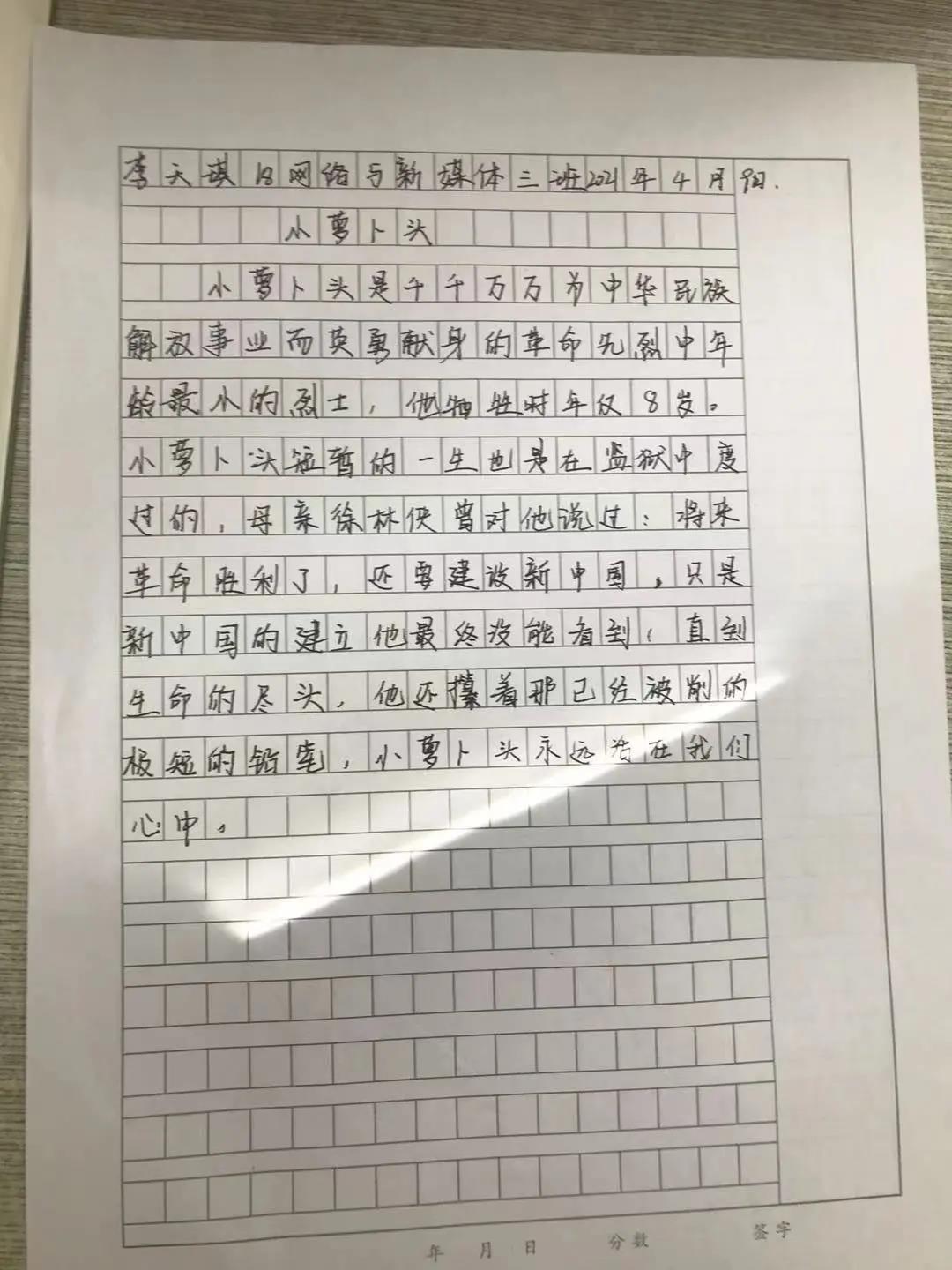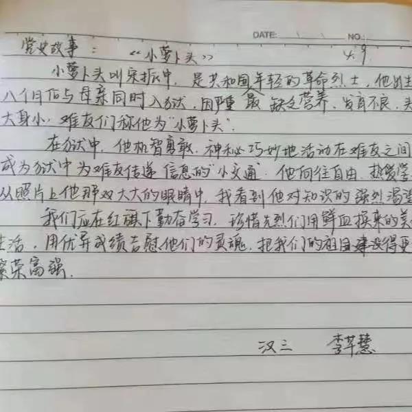 今天,在pg游戏电子模拟器“诵读党史”晨讲活动中分享了这个故事,让我们一起来看看同学们对于“小萝卜头”事件的理解吧!