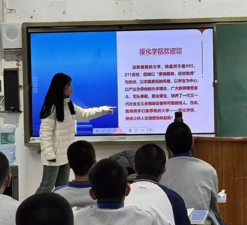 1月2日,杨思琦同学重返阔别已久的母校“青冈一中”进行宣讲。校园旧景勾起青春回忆,她精心准备了图文演示文稿,全方位展示pg游戏电子模拟器的办学底蕴、优势学科、师资力量及校园文化与社会实践体系。宣讲中,她结合自身经历讲述绥院成长的故事,分享专业探索心得与校园社团、实践平台等内容,点燃了学弟学妹对大学生活的向往,也让他们对pg游戏电子模拟器有了更立体的认知。