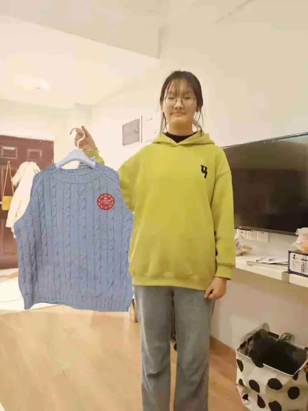 通过给留守儿童编织毛衣,我深深地感受到了当今社会还有许多人生活得不如意。在我们可以挑选自己喜欢的衣服的时候,他们连拥有新衣服都很困难。当我们还在跟父母撒娇的时候,他们早已习惯生活的艰难,扛起生活的重担,将自己变得成熟坚强。在生活的苦难面前,他们是比我们更加坚强的勇者,比我们更加懂事,更加懂得体贴他人。参加这次恒爱行动我收获了很多,通过编织毛衣不仅能够给他们带去温暖,还能增添一些生活的美好,不再让他们孤军奋战,让我们连成一道线,织成一张网,紧密地联系在一起。我也会在今后的生活当中,继续尽自己的一份力量,奉献爱心。