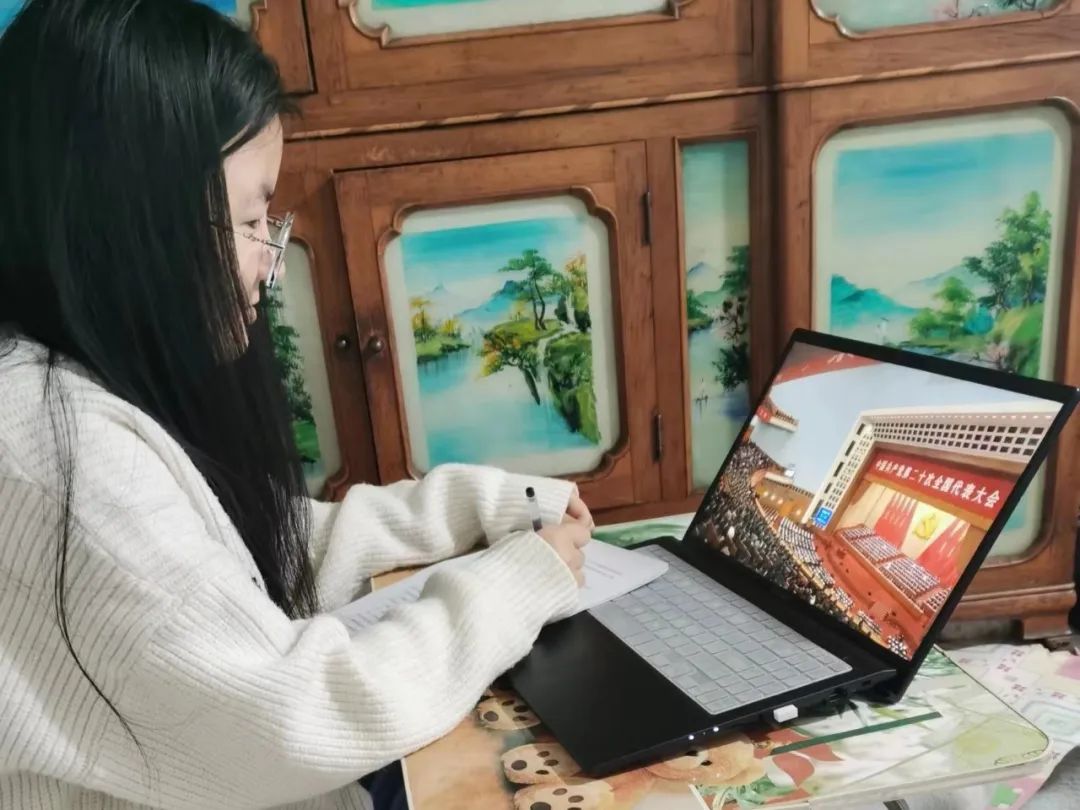 在寒假期间,王莹爽同学利用与家人团聚、朋友聚会时刻向他们宣传了党的二十大精神,王莹爽同学在深入学习了党的二十大报告后,向大家充分介绍了准备的有关材料,介绍了党的百年奋斗历程和辉煌成就,大家内心深感振奋、倍受鼓舞。活动结束后,她表示作为新时代大学生,要不负祖国、不负人民。坚定不移听党话、跟党走,严格自律、务实肯干,秉承“敢为人先,勇于进取”的精神,她将时刻牢记习近平总书记“有理想、敢担当、能吃苦、肯奋斗的嘱托期盼。