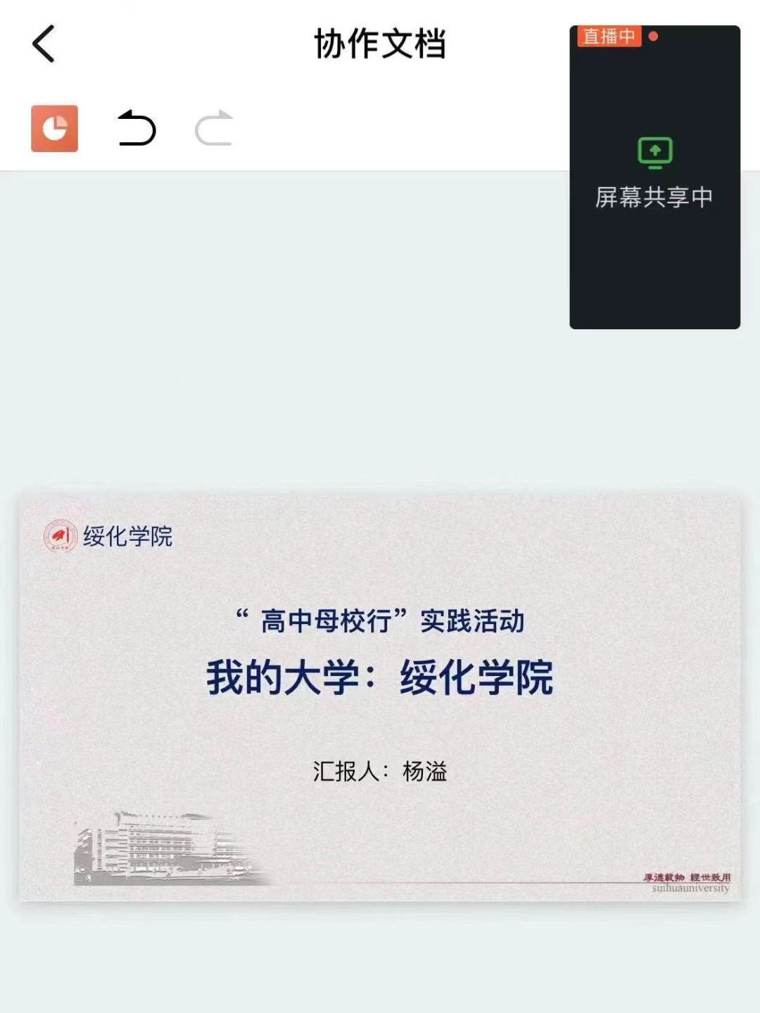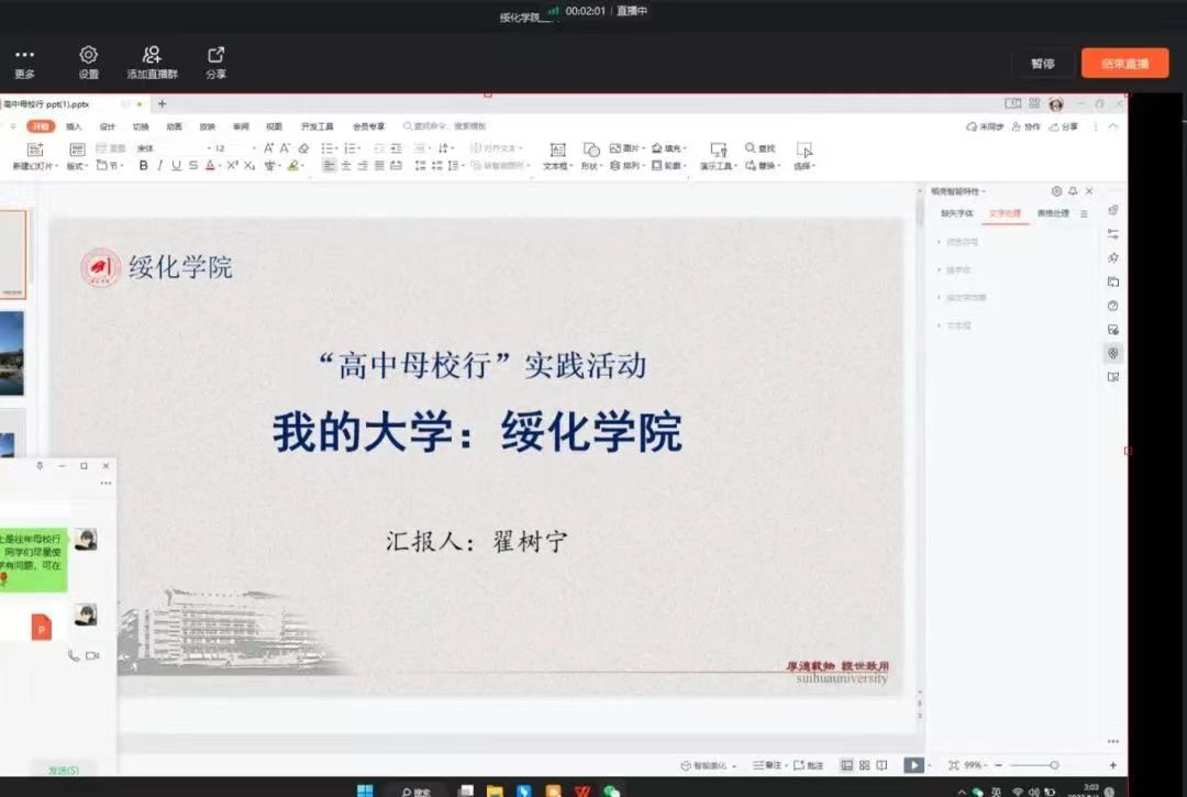 在实践活动开始前,杨溢同学与母校老师取得联系,确认活动开展的具体时间和形式,以及活动开展的具体方案。实践当天,杨溢同学准时开讲。宣讲过程中,她向学弟学妹们介绍了pg游戏电子模拟器基本情况、招生政策和咨询方式等内容,分享了自己在大学校园的生活及高中学习经验,并对学弟学妹们积极鼓励。