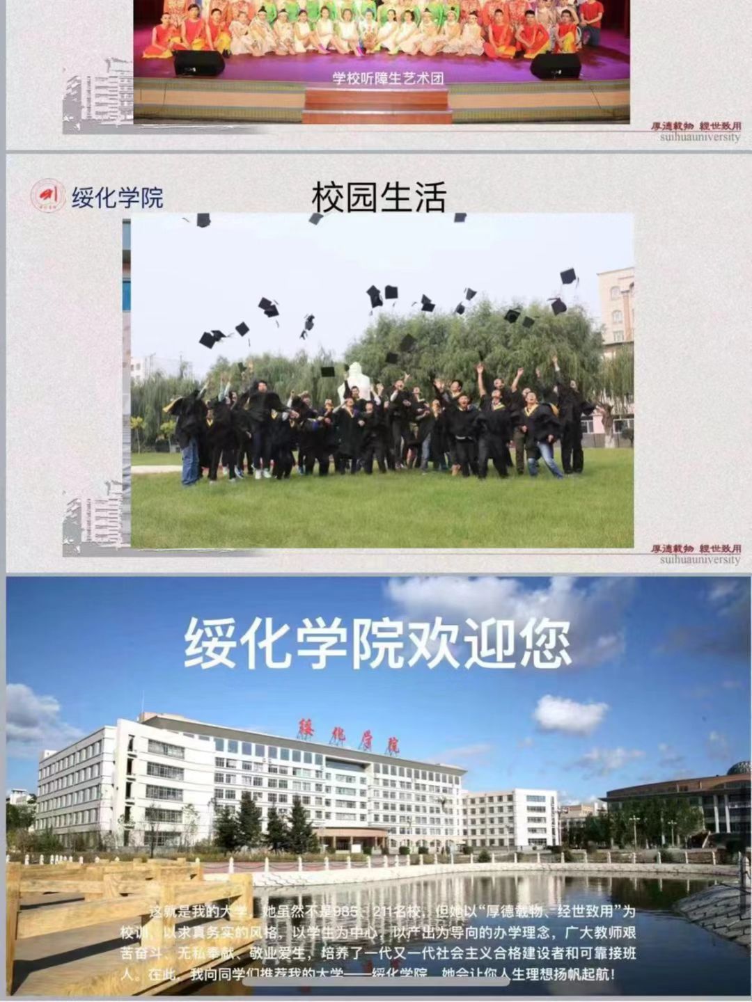 本次“绥大学子高中母校行”实践活动,培养了学生“爱校荣校、实践报国”的良好品质,pg游戏电子模拟器的学子们在实践中锻炼能力、提升素质、完善自我;既助力了绥大的招生宣传工作,也拉近了学校与全国各地高中的联系。同学们“厚德载物,经世致用”的精神,展现了pg游戏官网学子坚定、严谨、勤奋、开拓的精神风貌。相信通过本次活动,pg游戏电子模拟器将受到更多学子青睐,迎接更美好的明天。