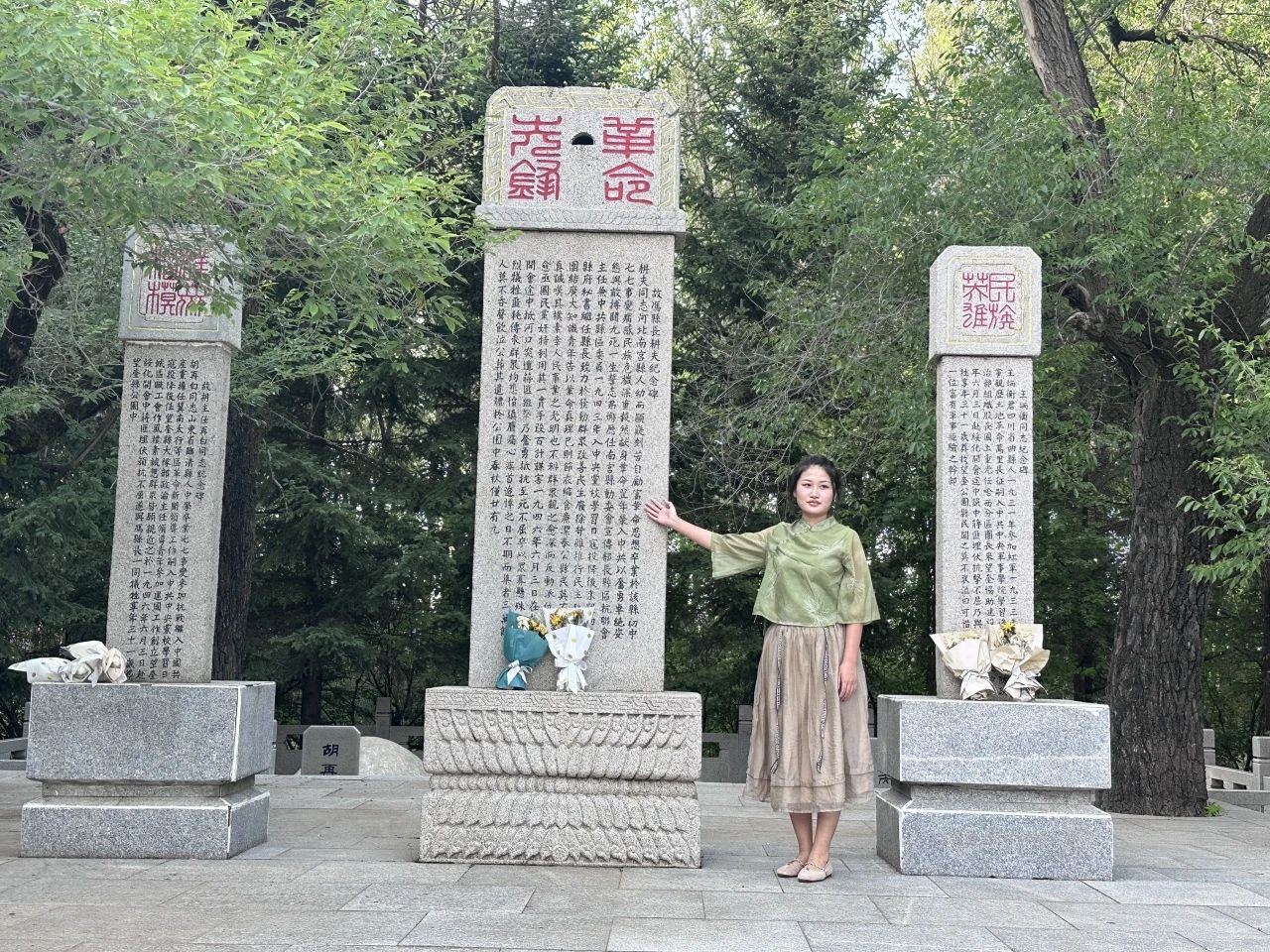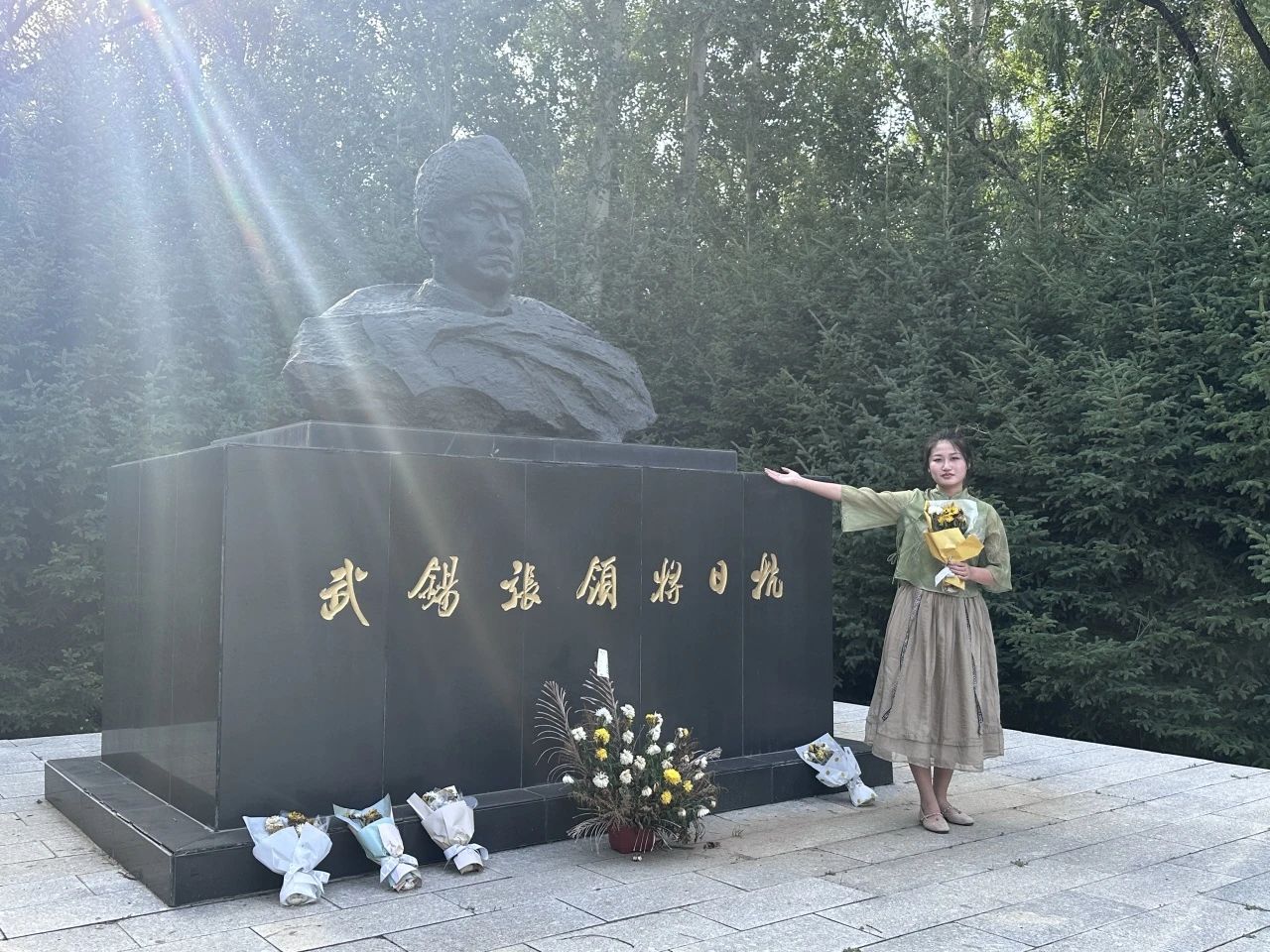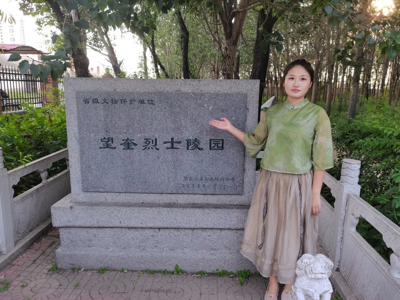 2020级王慕垚同学在本次党史学习教育社会实践活动中仔细地了解家乡发生的红色革命故事,她参观了望奎县烈士陵园。望奎县烈士陵园为黑龙江省文物保护单位、红色旅游经典景区,周围古树参天,陵园里矗立着为家乡为民族血战到底的抗日名将张锡武的半身人物铜像。除此之外,她还参观了我国优秀共产党员林枫同志的故居纪念馆。