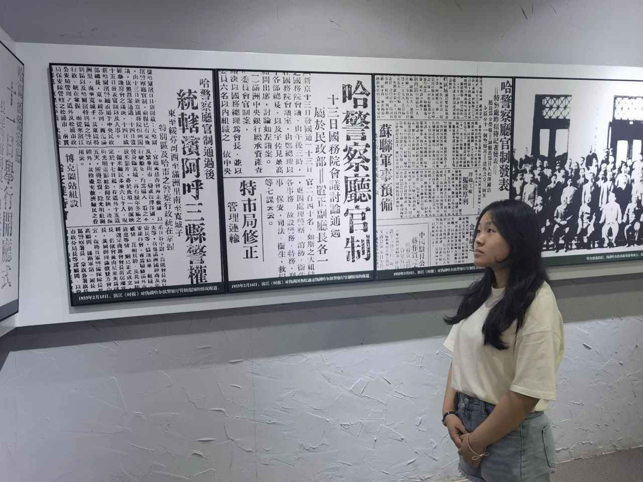 2021级邓一淼同学在本次社会实践活动中参观了东北烈士纪念馆,她说:“听着讲解员讲述革命故事,仿佛看到了革命先辈们与侵略者作艰苦斗争的情景。看着展厅墙壁上贴满了抗日英雄和抗战时期的老照片,还有展柜里陈列着的珍贵的历史文物以及革命烈士使用过的枪械等,自己好似置身在那枪林弹雨、保家卫国的时期。”