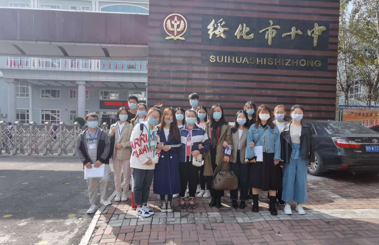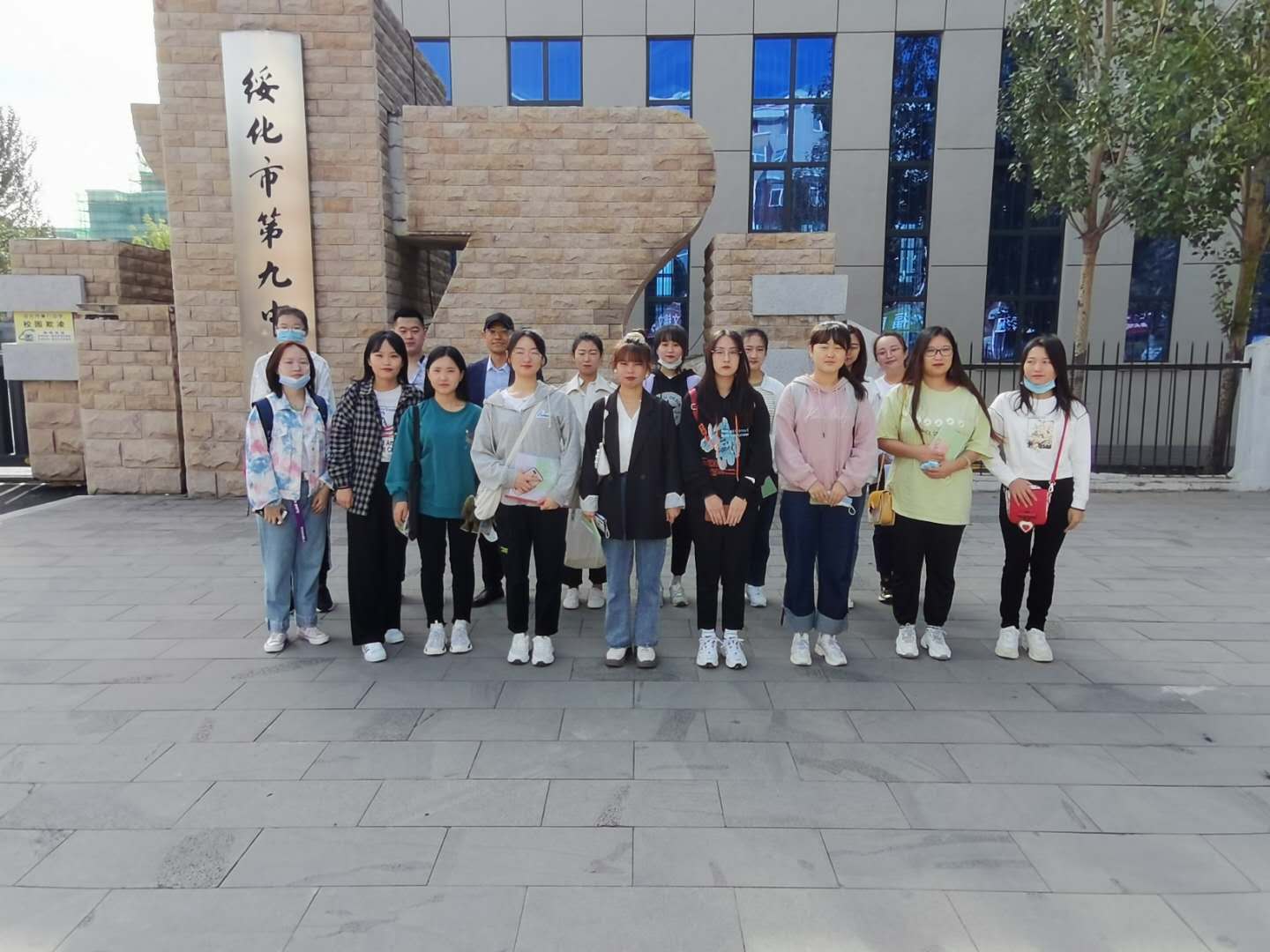 9月15日9:00绥化市第十中学实习基地(照片文字说明:领队教师李莉莉与实习生)