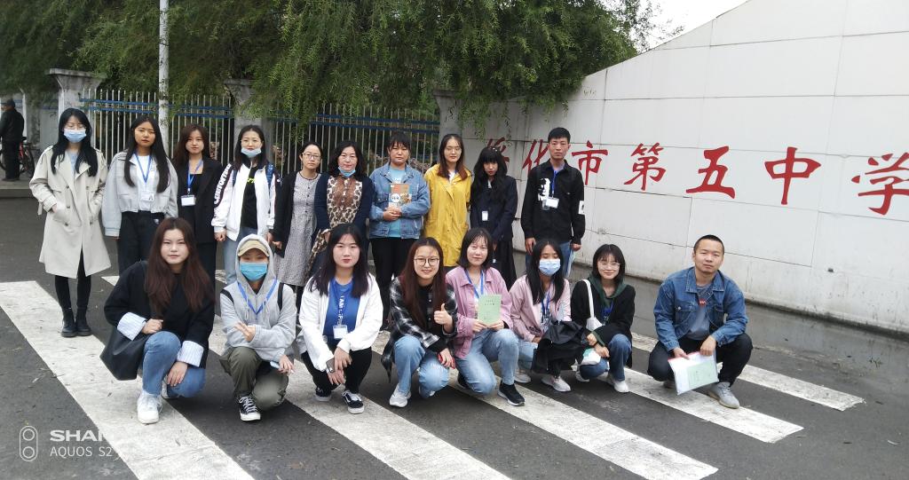 9月14日8:00绥化市第五中学实习基地(照片文字说明:领队教师徐洁、邓媛媛与实习生)