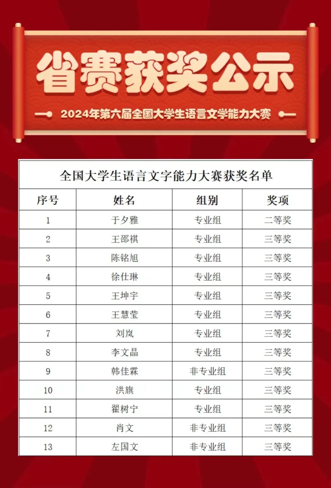 近日,第六届全国大学生语言文字能力大赛如期举行,本次大赛吸引了来自北京大学、首都师范大学、华南师范大学等1408所院校共3万多名学生报名参赛。在创新创业学院大力支持下,pg游戏电子模拟器作为协办单位组织了第六届全国大学生语言文字能力大赛省赛。经过激烈角逐,pg游戏官网共有13名学生(专业组10人,非专业组3人)脱颖而出,在比赛中获奖并晋级国赛。